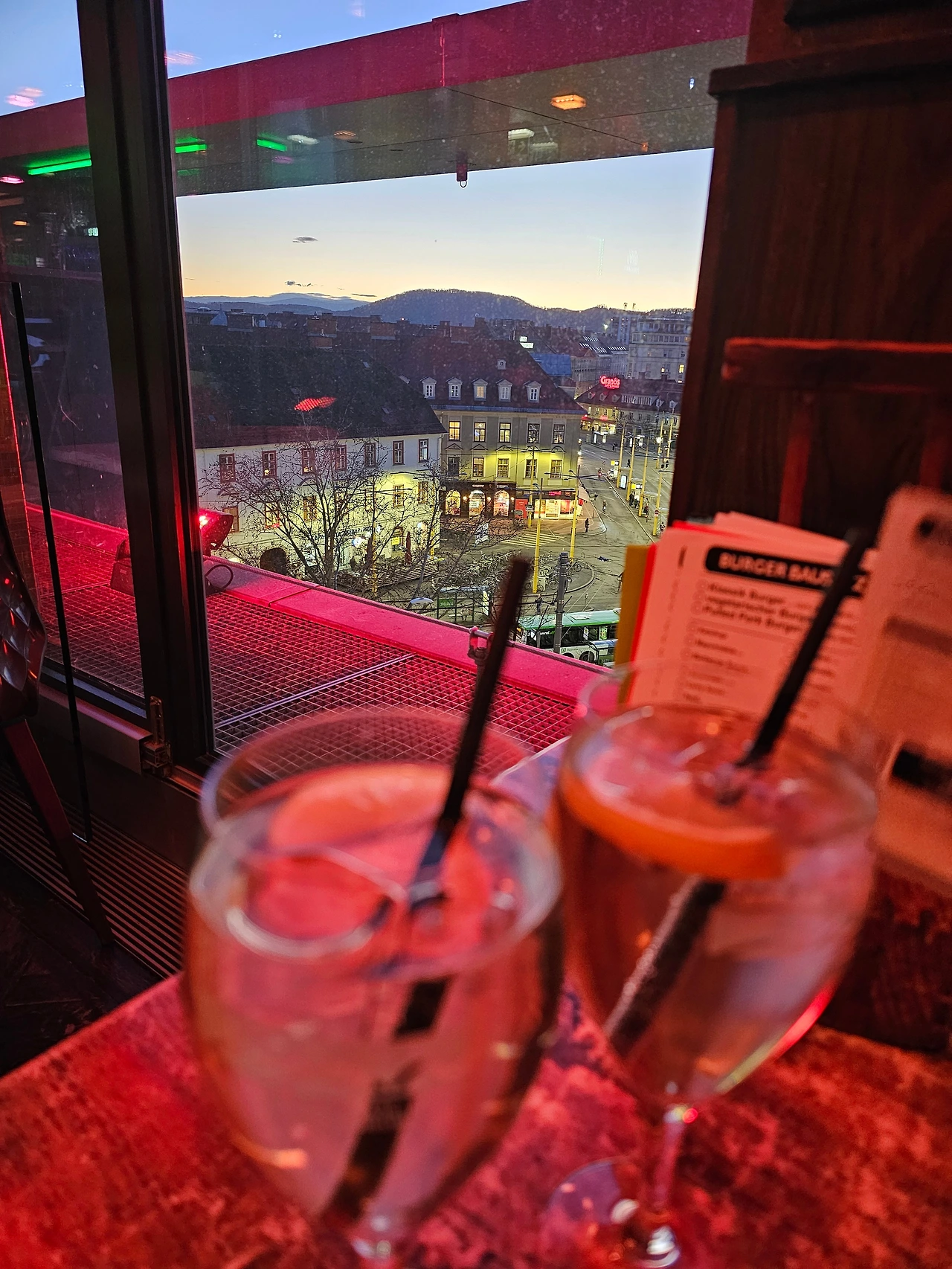 오후 5시경 Graz 시내 안에 있는 술집 겸 레스토랑