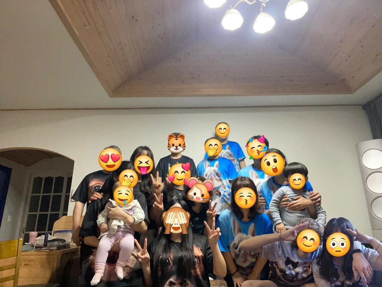 (합성한 나와 그를 포함해) 이번 설 명절에 가족별로 티를 맞춰 입은 모습, 행복한 시간을 보내고 있는 나.