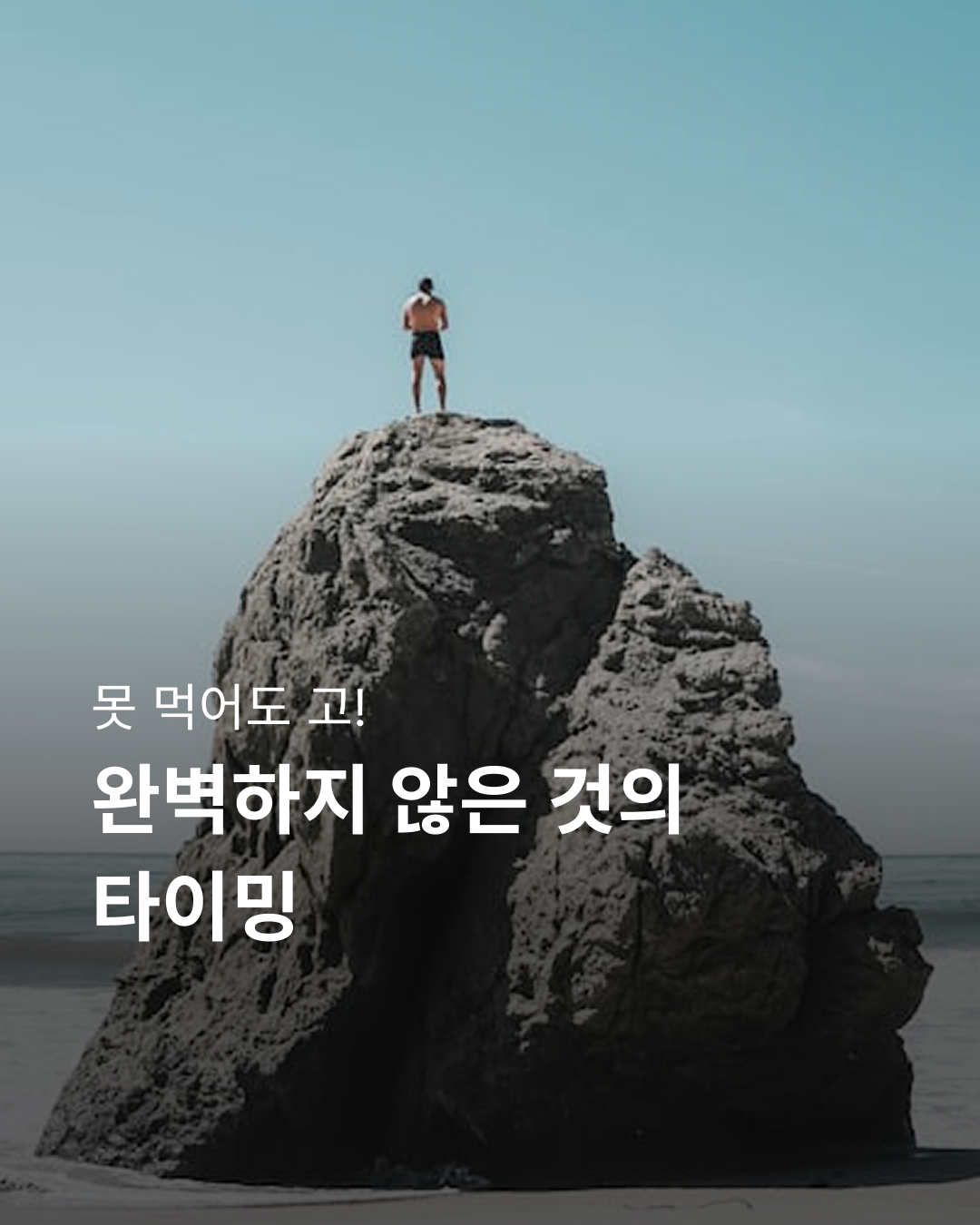 의미 있는 시작은 대부분 허술했습니다. 완벽한 준비가 성공을 보장하지 않았고, 부족함 속에서 배워가며 완성에 가까워졌습니다. 준비되지 않았다는 이유로 미루는 순간, 진짜 타이밍은 사라지더라고요. 결국 성장은 시작 후의 과정에서 만들어지는 거였죠. 그래서 저는 완벽하지 않아도 시작하는 게 가장 완벽한 타이밍이었다고 생각합니다.