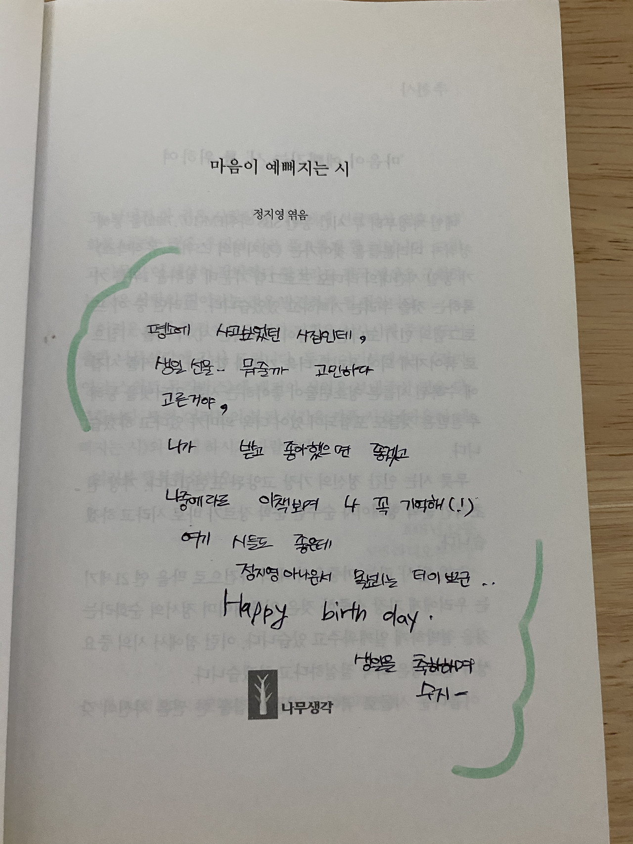 자신이 좋아하는 것을 나 역시 좋아했으면 한다는 당시 14살이었던 친구의 예쁜 마음은 20년이 지나 시간이 흐를수록 시집을 향하는 나의 마음이 깊어짐을 느낀다. 그 시절 우리의 추억이 담겨있고, 생일선물의 행복 도 같이 선물해준 친구