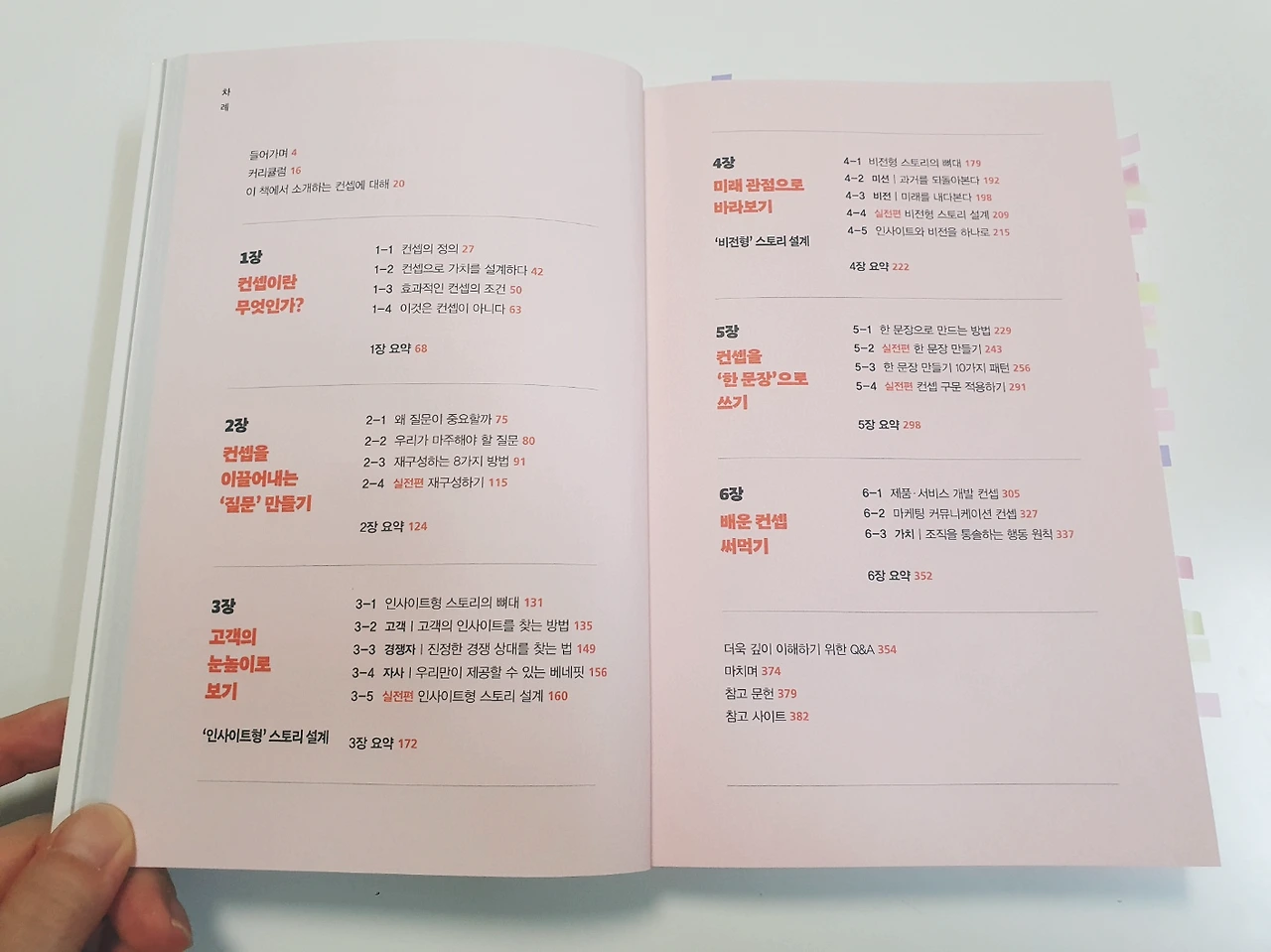 우선, 이 책으로부터 잘 배워야 하는 건 '컨셉 만들기'를 위한 다섯 단계이다.