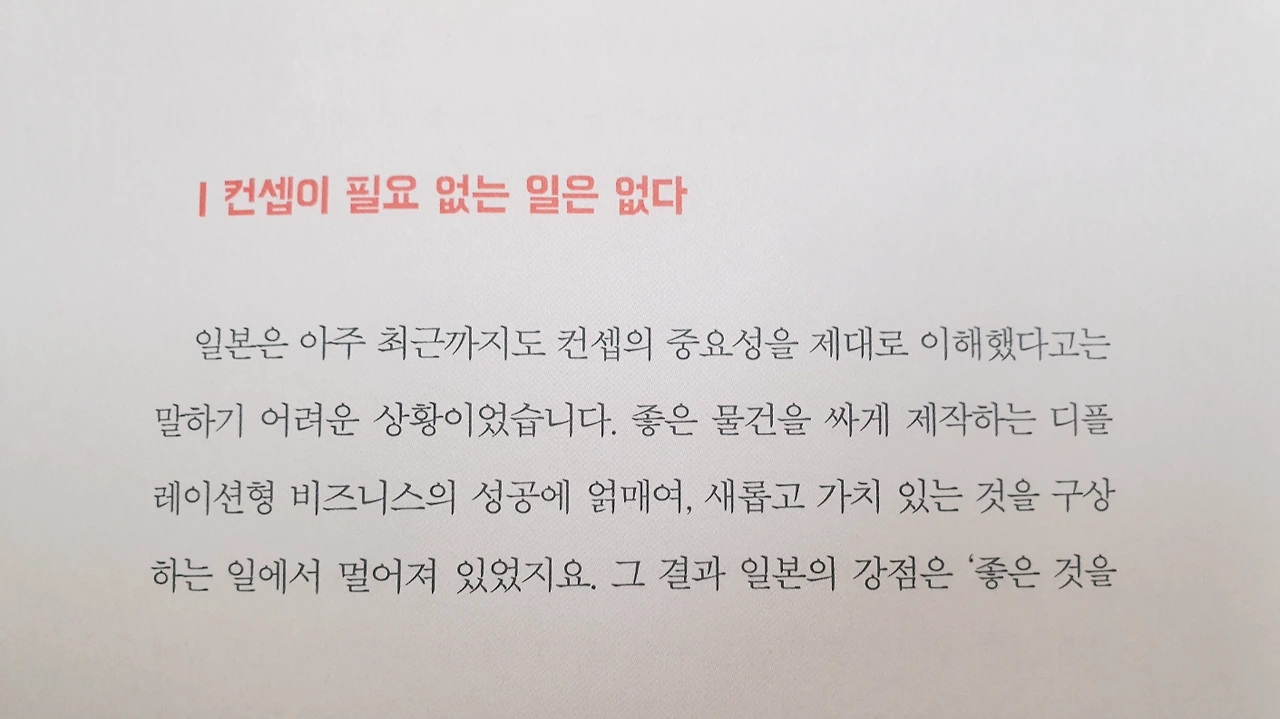 이 말은 거의 1000프로 공감한다. '컨셉'이라는 건 어디에나 필요하다. 처음 보는 사람에게 나를 소개하는 일도, 삶을 살아가는 방식도, 내가 제대로 쉴 수 있는 방법을 찾는 것도, 마음에 드는 사람에게 매력을 어필하는 것도! 어디든 컨셉이 있을수록 효과적이고 효율적이다. 이건 '행복이랑 만족'에 더 가까워지는 일이기도 하다. 그래서 컨셉을 제대로 이해하고 싶다면 '나는 과연 어떤 컨셉으로 살고 있지?'라는 생각을 먼저 해보는게 제대로 된 학습이자 실천이지 않을까 싶다. 아무튼, 격하게 공감하는 부분이라 이것도 기억에 남는 문장으로 꼽았다.