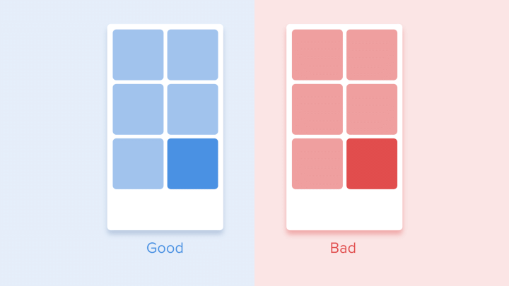 그렇지 않으면 사용자가 어떤 오브젝트를 따라가야하는지 어려워서 주의가 분산될 수 있습니다. 그러므로 원하는 애니메이션을 주고싶은 요소들이 여러개가 된다면, 그 움직임의 순서를 명확하게 정하고 가능한 적은 요소에 애니메이션을 주어야 합니다.