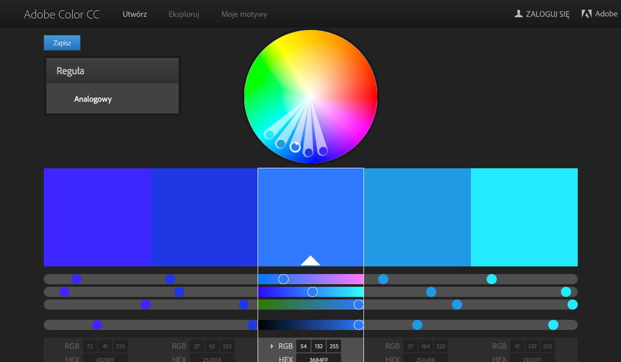 어도비에서 만든 이 툴은 이미 오랫동안 우리와 함께 해왔습니다. 이것은 데스크탑 버전의 브라우저에서만 가능합니다. 데스크탑을 사용하고 있다면, 포토샵으로 색상표를 내보낼 수도 있습니다.