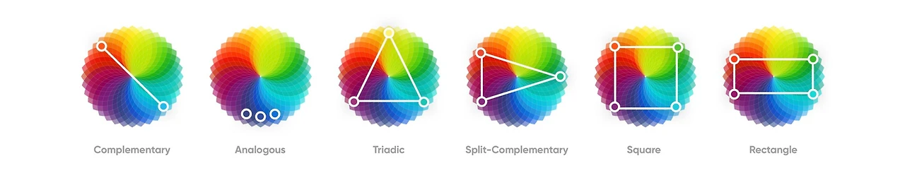 몇가지 컬러들은 서로 잘 어울리지만, 반면에 부딪히기도 합니다. 아래에는 컬러휠에서 가장 많이 쓰이는 상호작용에 대한 명확한 규칙들이 있습니다. 이런 방법을 알아둘 필요는 있지만, 그렇다고 꼭 따라야하는 건 아닙니다.