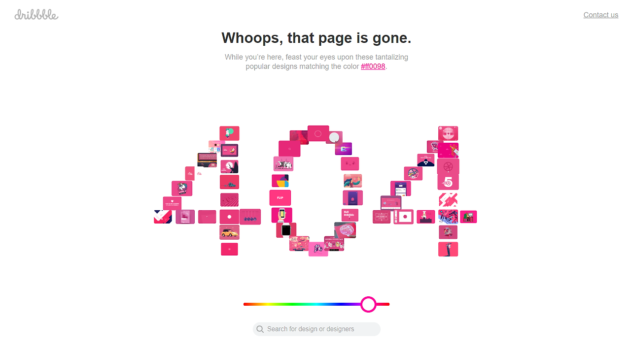 Dribble의 에러페이지는 사용자에게 멋지고 밝은 인상을 줍니다.