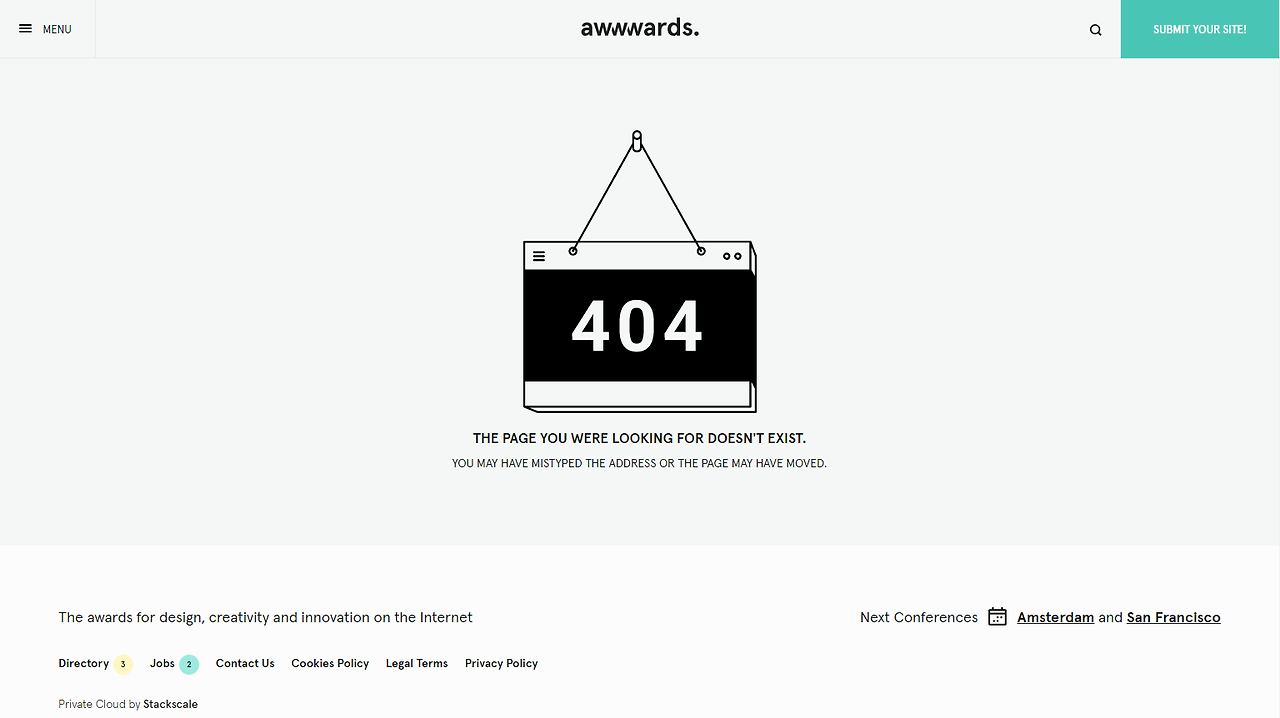 Awwwards의 에러페이지는 설명한 것들보다 훨씬 심플합니다.