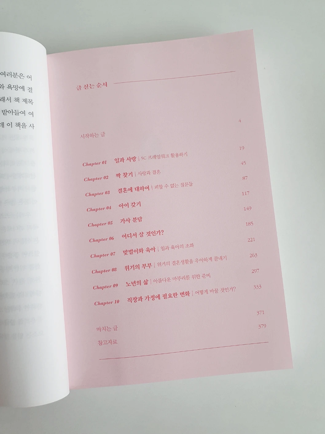 아무래도 워킹맘에 대한 고민이 크다 보니 가장 집중해서 읽은 부분은 일과 육아의 조화를 다루는 '7장. 맞벌이와 육아'였다. 이 챕터에서는 외벌이, 맞벌이 부부의 다양한 케이스를 설명해주는데 사실 어떤 형태든 남편과 아내 둘의 가치관이 서로 존중되고 대화를 통해 맞춰가는 것이 중요하다는 걸 보여준다. 주변 지인 부부만 해도 외벌이를 마땅하게 생각하는 경우, 맞벌이를 마땅하게 여기는 경우로 나뉘는 걸 보았다. 두 부부 모두 만족하며 살아가는 걸 보았을 때 우선순위 합의만 이루어지면 전혀 문제 될 건 없어 보였다. 우선 나는 워킹맘을 꿈꾸고 있으니, 이걸 원하거나 존중하는 배우자를 만나야 하는 건 분명하다. 이게 내 전략 중 가장 우선순위이지 않을까. 나는 배우자와 함께 육아는 물론 커리어 면에서도 함께 시너지를 이루고 언제나 응원과 지지를 보내주는 팀워크를 희망하고 있으니까!