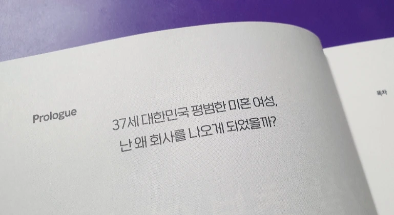 프롤로그에 등장하는 문구. 나이가 다른거만 빼면 내가 가진 타이틀이다. 대한민국에서 살아가는 30대 여성은 '기혼'과 '미혼'이라는 수식어에 따라 입장차이가 많이 나는데, 곧 30대 중반에 접어드는 나는 여전히 '미혼'을 고수 중이고 '사업'을 택한 것 역시 작가님과 겹치는 큰 공통점이었다. 그래서 제목만으로도 이 책이 끌렸다.