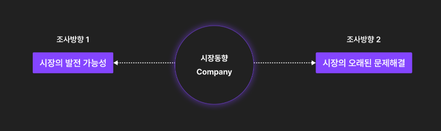 시장동향 조사는 크게 2가지 결로 나누어 접근할 수 있다. (1) 첫번째는 내가 노리는 시장을 다른 시장과 접목하는 등 가능성이나 확장성을 크게 보는 관점이 잇고, (2) 두번째는 시장에서 사용자가 꾸준히 느끼는 불편함을 해소하는 문제해결 관점이 있다.