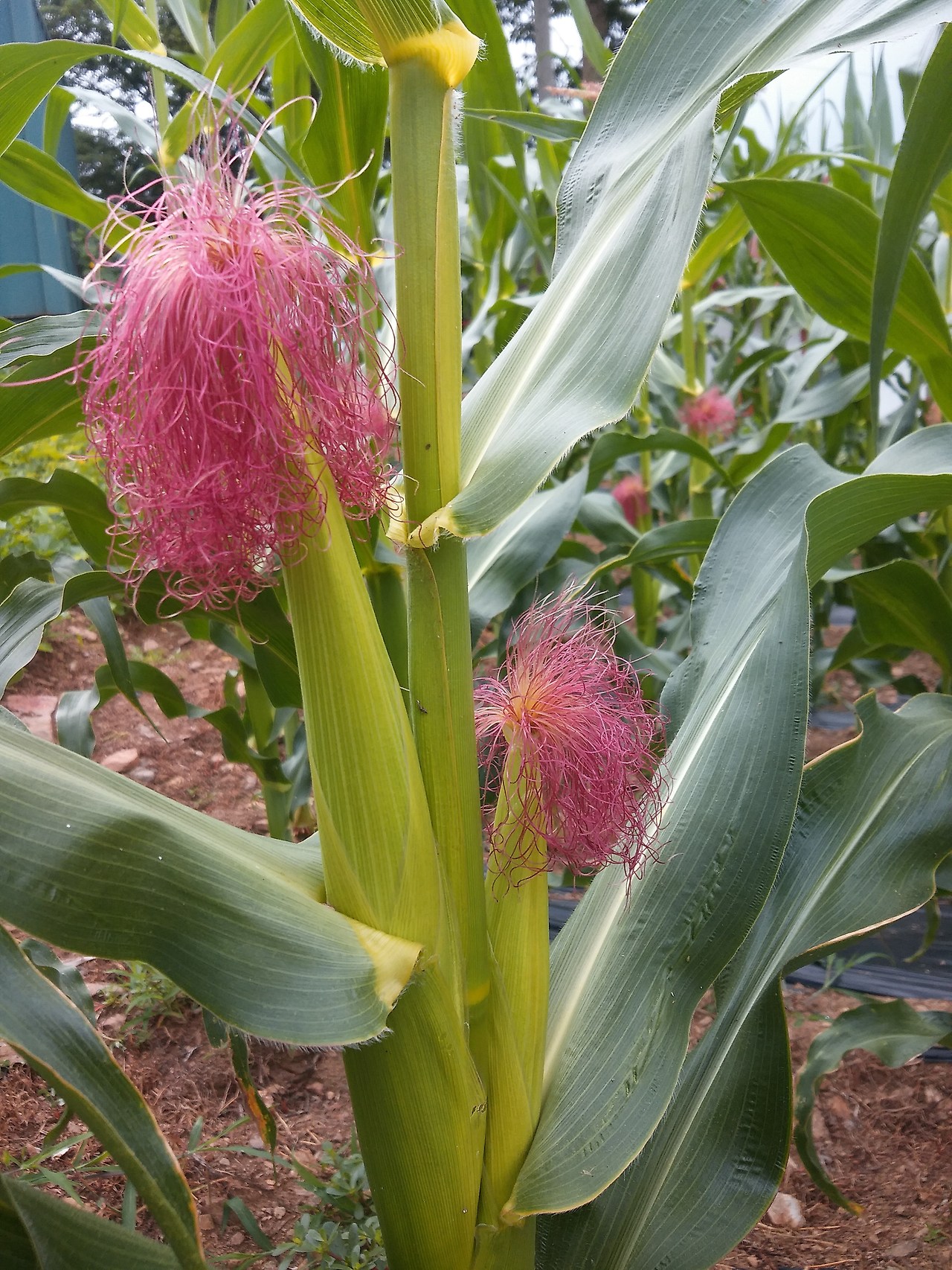 물론 꽃만 피어있는 것은 아니다. 수박도 벌써 갓난애 머리통만 하게 자랐고 참외도 작지만 튼실히 크고 있다. 호박과 오이와 가지와 고추와 토마토는 벌써 한 번씩 따먹기도 했으니 꽃만 피어있다고 말할 수는 없겠다. 다 죽은 줄 알았던 고구마도 풍성히 잎을 가꾸고 옥수수는 벌써 한 줄기에 두 자루씩 자랑스레 키워내고 있다. 꽃이 피고 열매 맺는 풍성한 계절이다.