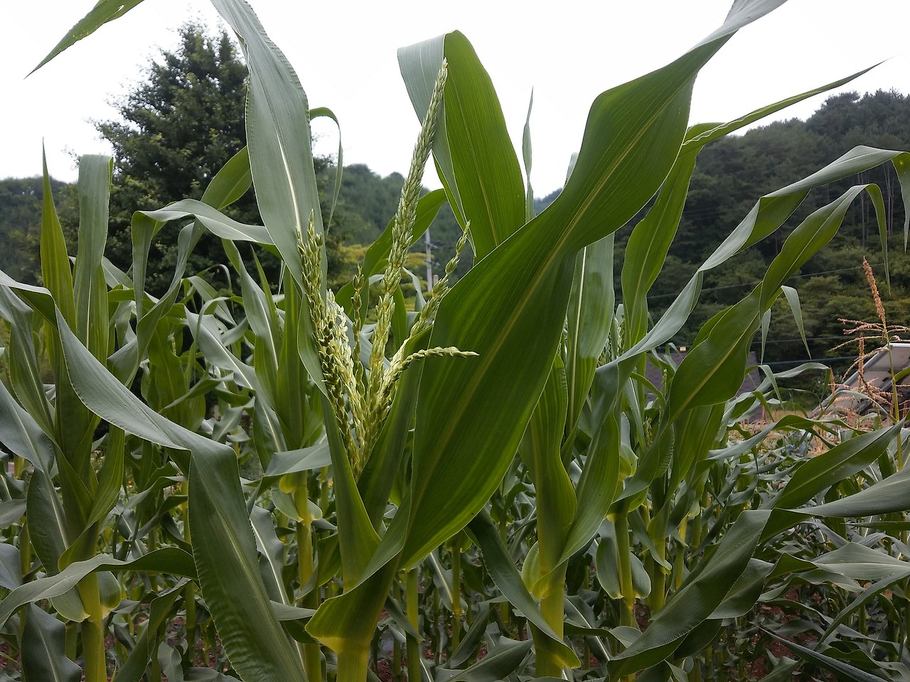 아마도 누가 말을 해 주는 게 틀림없다고 생각했다. 어떻게 그렇게 옹기 종이 모여 서서 올림픽 매스게임을 하듯이 동시에 움직이는 것일까. 한 박자씩 늦는 옥수수도 있었지만 거의 대부분은 비슷하게 꽃을 피워내고 열매를 쫑긋 내달았다. 이 동네에서는 옥수수 꽃을 개꼬리라고 부르는데 그 말을 듣고 보면 정말 개꼬리 같기는 하지만 엄연히 이건 옥수수가 피워낸 꽃이다.