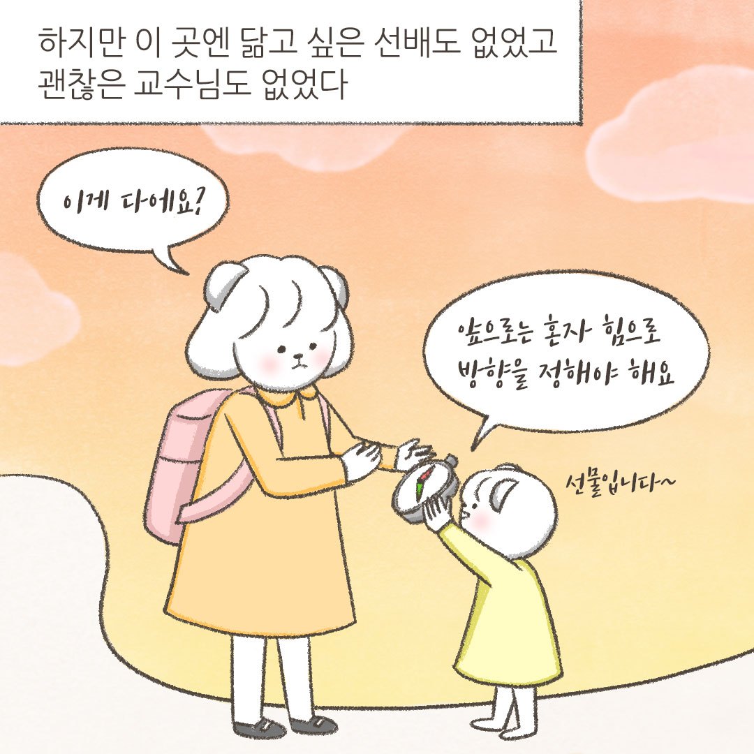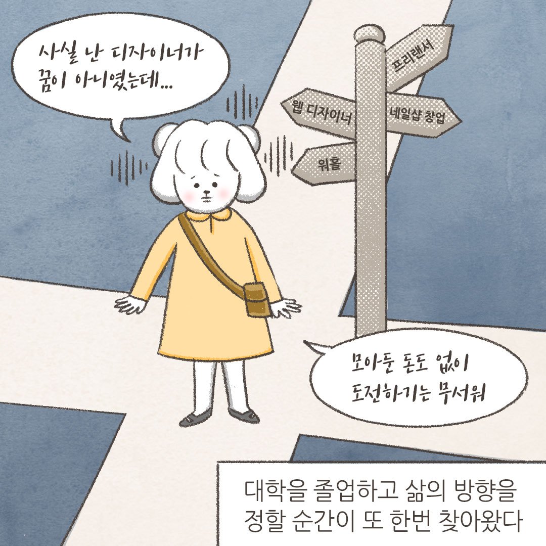 재수까지 하며 그토록 원했던 디자인학과에 들어가 보니 (여대라서 그런 건지...?) 각자도생 분위기였습니다. 물론 제가 존경할 만한 교수님도, 선배도 없었죠. 나름대로 틈바구니에서 살아남기 위해 졸업할 때까지 학과성적도 상위권으로 유지시키면서 복수전공도 수강하고, 틈틈이 방학에 인턴, 알바 등을 하며 숨 가쁘게 달려왔습니다.