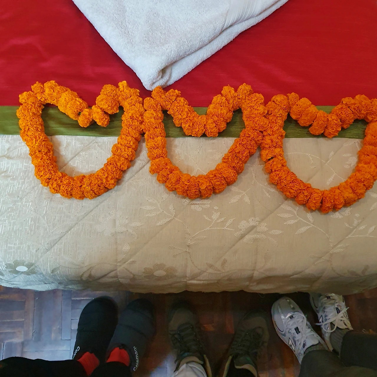 응? 그리고 날 맞이한 네팔은 푸르름. 아니 이건 파스텔 색인가? 온통 따뜻함으로 가득한 하늘이 기다리고 있었다. 노오란 금잔화를 엮어 만든 목걸이를 한 명 한 명 걸어주며, 길었던 여행을 위로하는 프라카스_히말라야 트래킹의 가이드이자 길잡이이자 우리의 친구_또한 그곳에 있었다.
