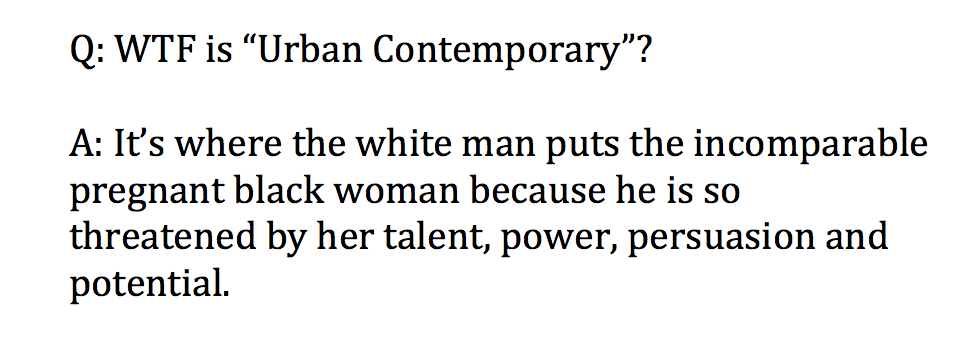 그래서 지난해 수프얀이 그래미 수상 결과를 두고 제기한 문제는 재밌다. 당시 아델이 비욘세를 제치고 올해의 앨범상을 탔다. 비욘세는 어번 컨템퍼러리 앨범상을 수상하는 데 그쳤다. 올해의 앨범상을 탄 아델마저 이해할 수 없는 결과였다. 아델은 트로피를 쪼개 비욘세에게 건네는 시늉까지 했다. 수프얀은 자신의 블로그에 비욘세가 올해의 앨범상 대신 받은 어번 컴템퍼러리 앨범상을 두고 인종문제를 제기했다.