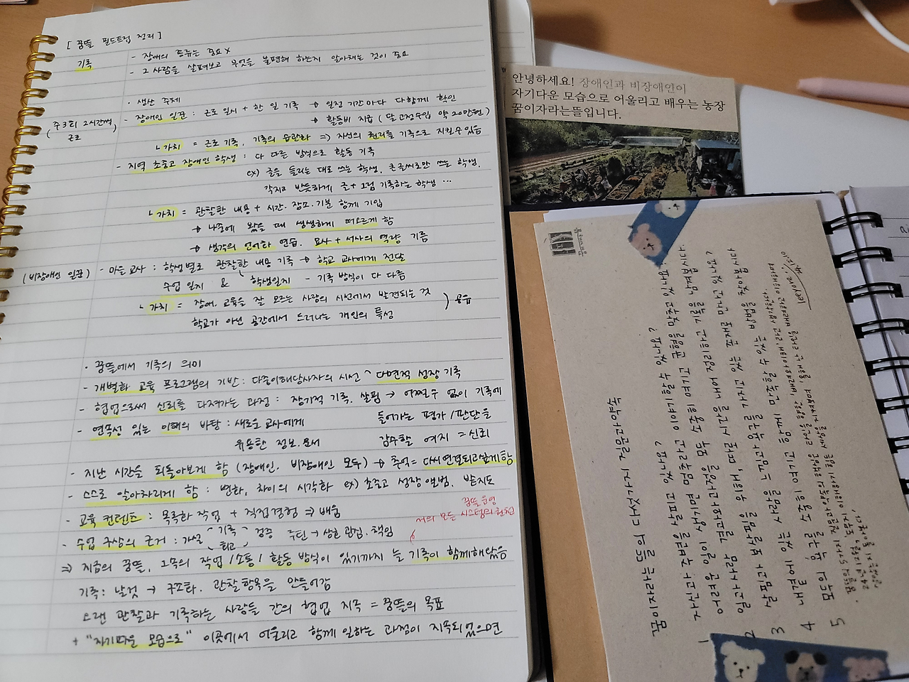 오랜 기간 동안 꿈뜰이 하는 일과 서로를 돌본 내용을 공유하며 쌓인 기록이 나, 나의 가족이나 학생을 관찰하고 기록하는 주체로서 꿈뜰을 믿을 수 있게 하는 것입니다. 또한, 장애인 일꾼이나 학생들이 기록해 둔 내용이 일정 기간마다 회고를 통해 ‘스스로 알아차림’의 과정에 활용되며, 특히 장애인 일꾼의 활동 기록은 자신의 권리를 보호하가 위해 근무 일지 작성을 습관화하는 과정이 된다는 말에서도 예상치 못한 기록의 역할을 확인했습니다.