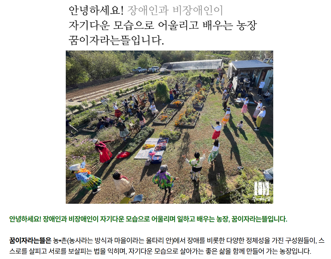 정리하자면, 발달장애인의 사회활동 및 비장애인과의 협업이 농사로써 이루어지고 그러한 시스템을 기록이