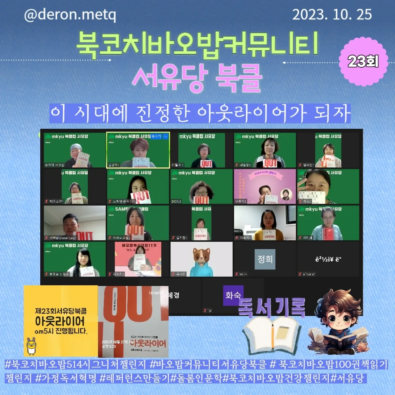 혼자 읽는 책 읽기보다 사람들과 어우러져 읽는 즐거움을 알게 해준 그 시절 그 사람들이 오늘 무지 그립다. 모두 잘살고 있을 것이다. 책 바보 모임은 아직도 한 달에 한 번 모임을 이어가고 있다.