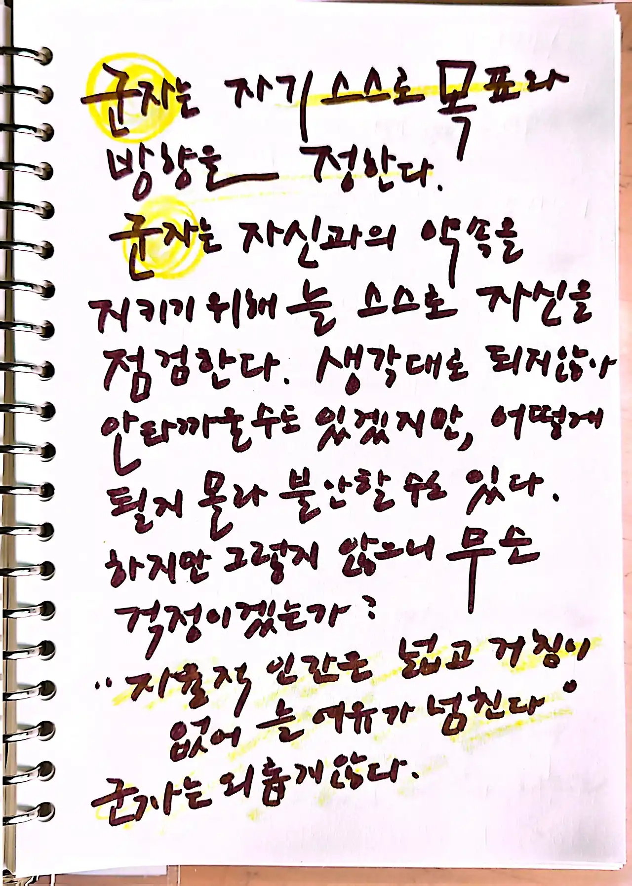 <자율적 인간은 걱정하지 않고 두려워하지 않는다. 군자는 자기 스스로 목표와 방향을 정한다. 군자는 자신과의 약속을 지키기 위해 늘 스스로 자신을 점검한다>