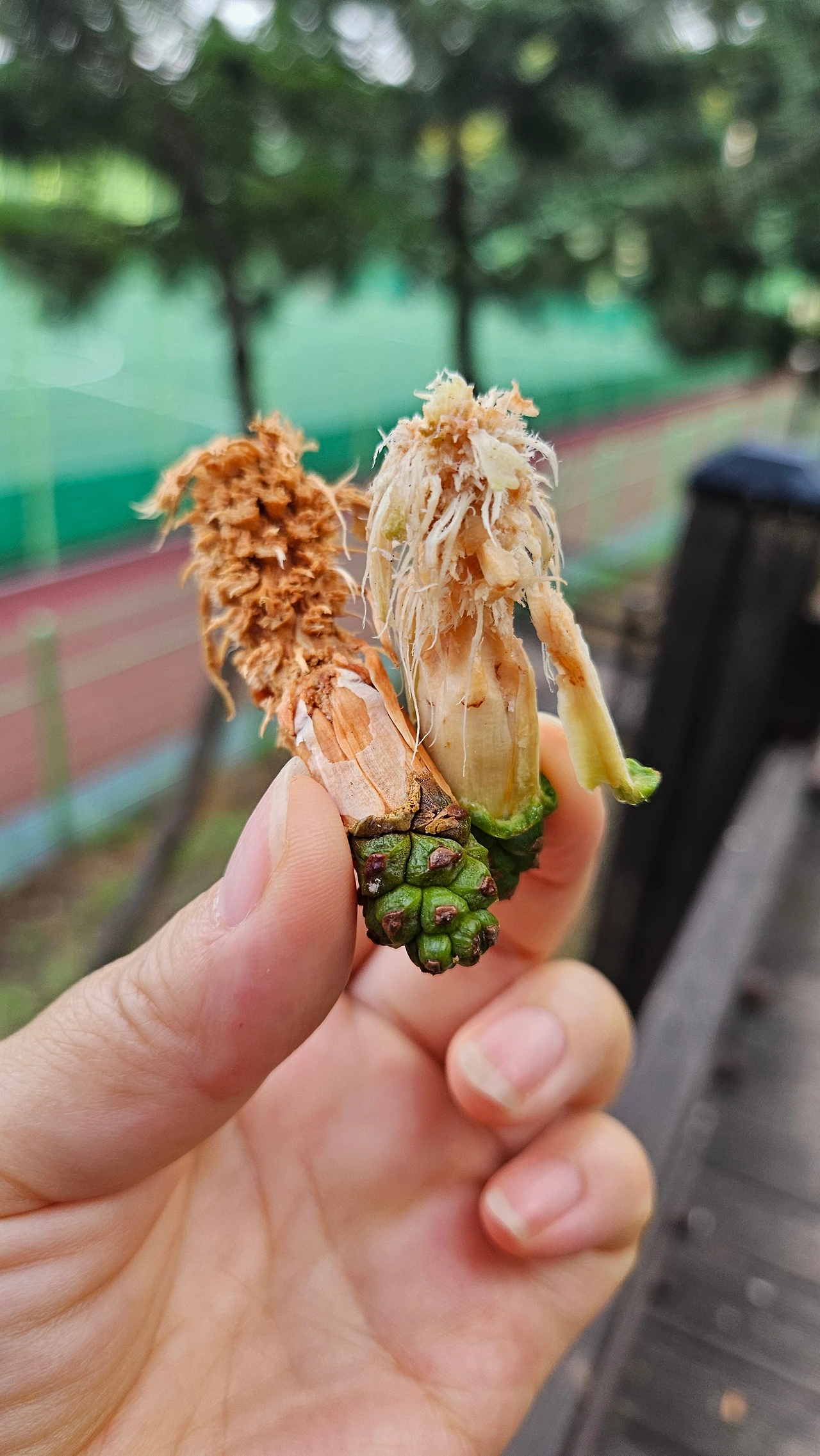 '툭' 하고 발밑에 떨어졌다. 뭔가 하고 자세히 들여다봤더니 솔방울이다.