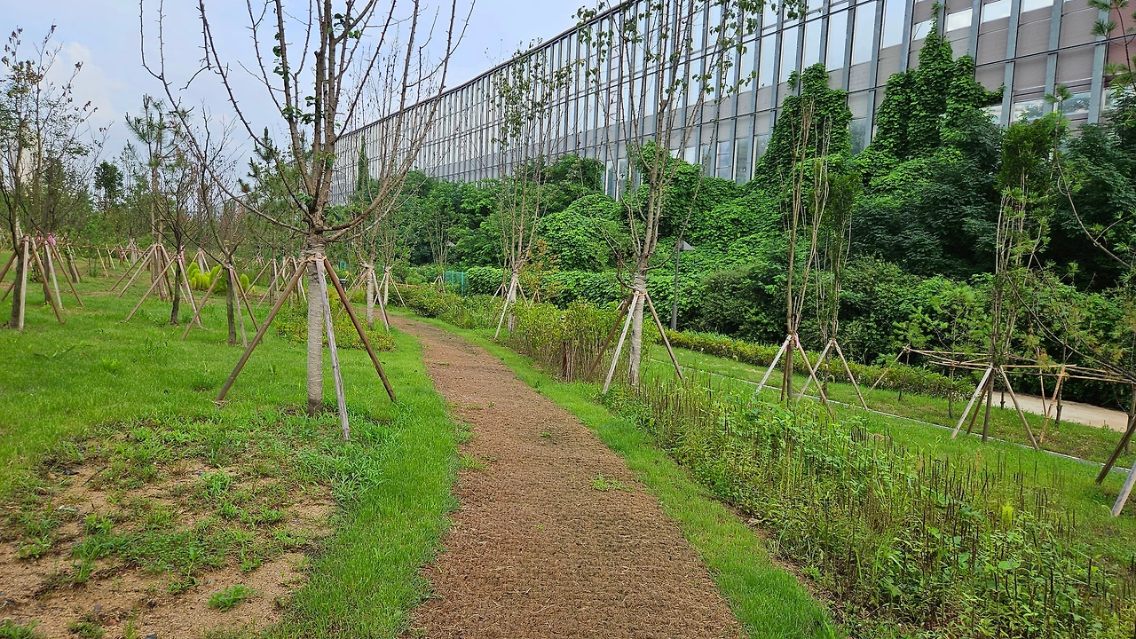 몇개월간 공사를 들어가더니 뚝딱 산책로를 만들어냈다. 맨발 걷기도 할 수 있게 흙이 있어 좋다.