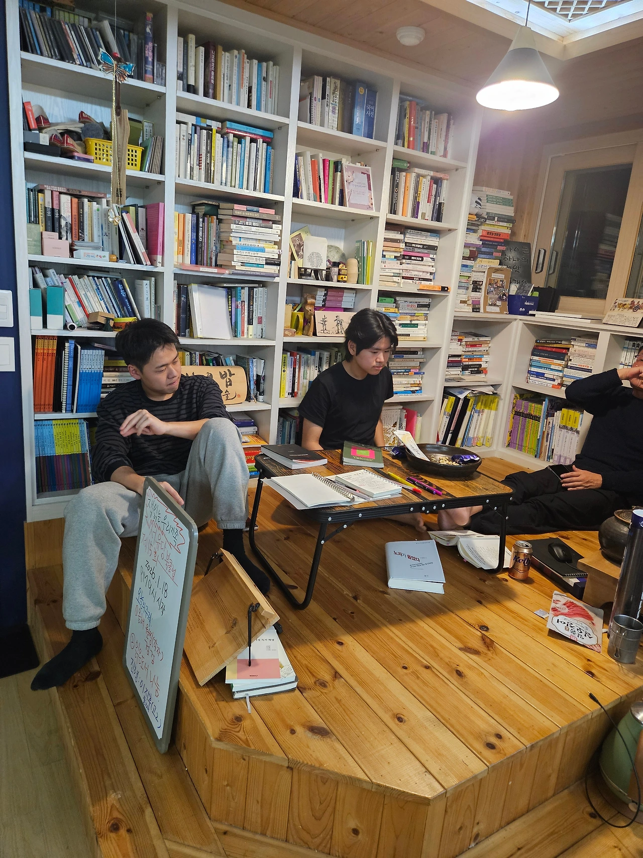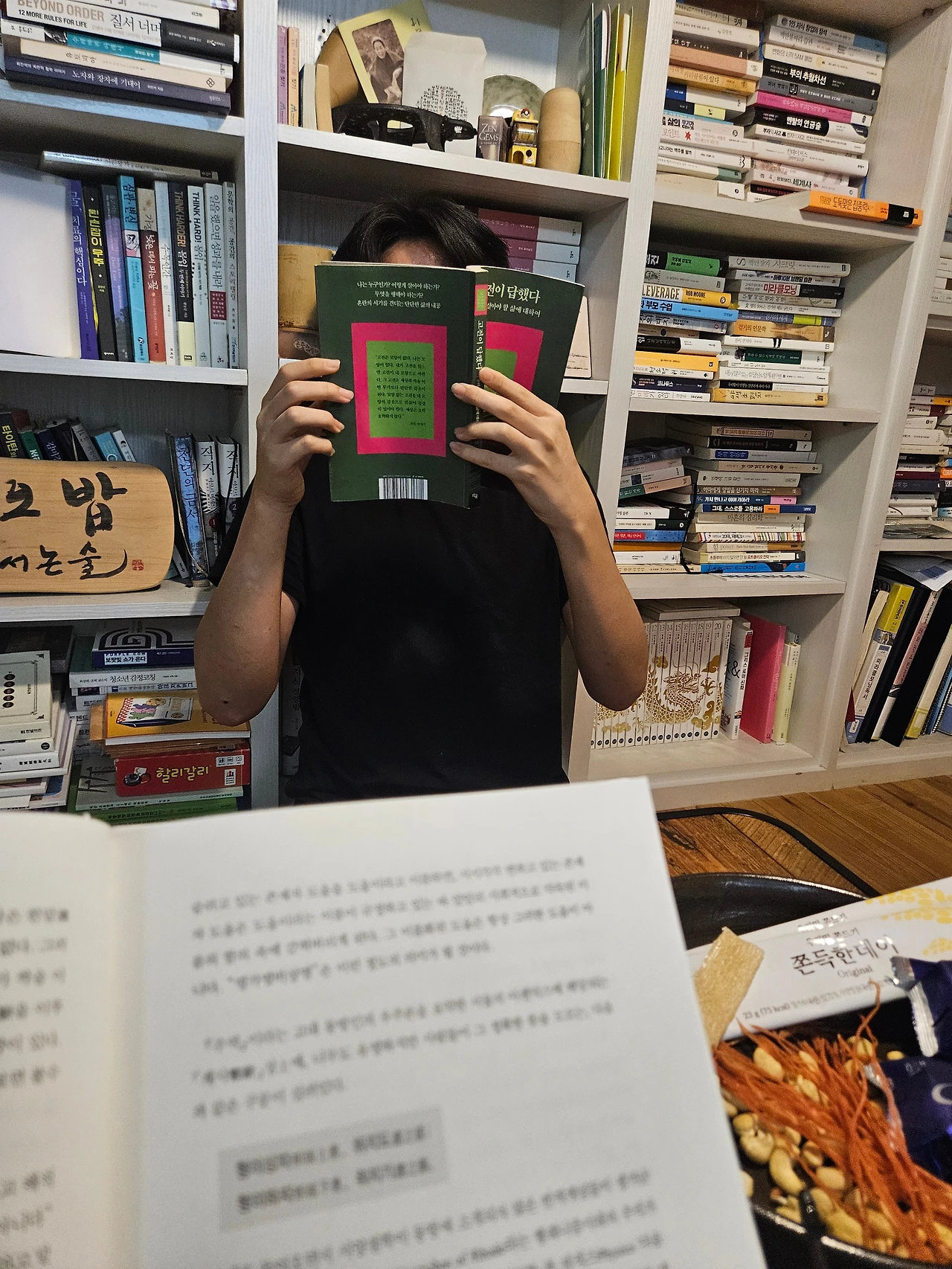 지난 15일 동안 지후와 하루도 빠짐없이 진행해온 '진로 읽걷쓰' 덕분일까. 방학 중 매일 습관을 들인 탄력 덕분에 온 식구가 책을 들고 한자리에 모이는 과정이 참 수월했다. 마침 큰아이 유찬이도 아르바이트를 쉬는 날이라, 다 함께 닭강정을 먹고 자연스럽게 모임이 시작되었다. 20분간 각자 책을 읽고 토론하는, 지후와 내가 하던 방식 그대로였다.