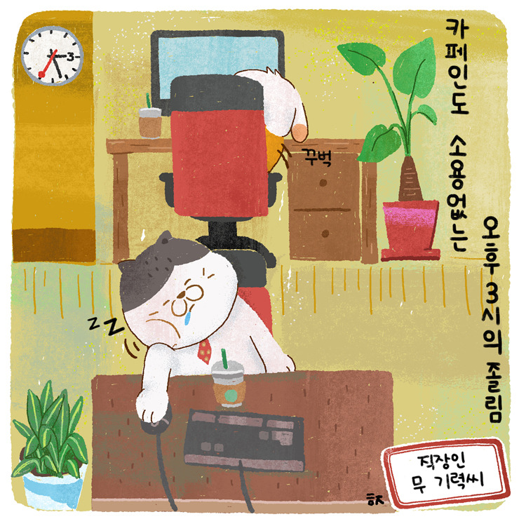 겨우 정신과 눈꺼풀을 부여잡고 있는데, 어디선가 들리는 낮은 코 고는 소리. 팀장님 자리 쪽에서 나는 소리다.