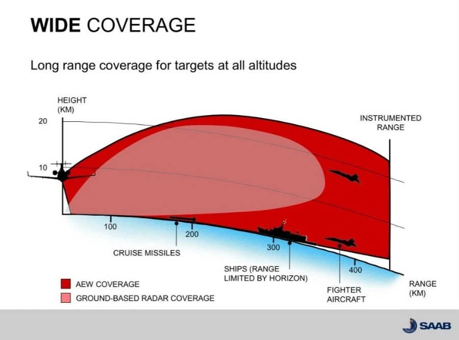 통상 공중조기 경보기들은 느린 속도로 비행해야 레이더의 성능이 극대화되는데, 이를 위해 SAAB의 글로벌아이는 약 5°의 AOA(받음각)를 주고 비행을 하게 된다.