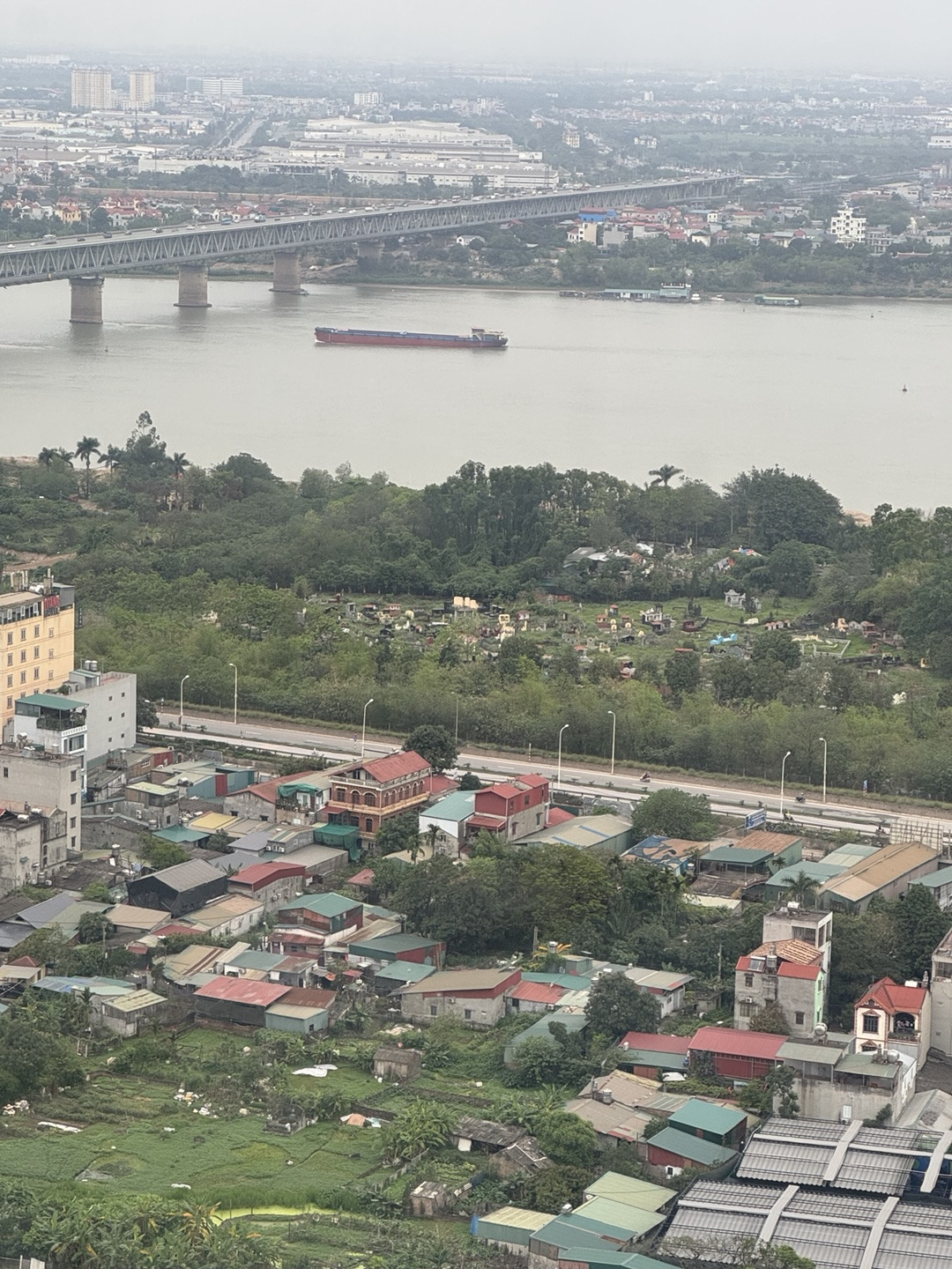 돌 무렵쯤부터 탈 것들은 다 좋아했던 현우와는 창 밖 구경을 참 많이 했다. 멀리 보이는 강은 홍강(Sông Hồng)으로 선박이 다닐 수 있을 만큼 깊고 넓어 내륙 수운에 이용되는데, 그래서 항상 화물 운송선이 떠있다. 현우와 함께 떠있는 배 숫자도 세어보고 배의 어디가 앞이고 뒤인지 얘기한 기억이 난다. 홍강을 따라 옆으로 도로가 길게 하나 있는데 이 길 위로 지나다니는 자동차, 오토바이, 트럭 구경도 많이 했다. 밤이 되면 작은 불빛들이 또 이 길을 따라 총총히 움직이는데 바로 이 길이 안즈엉브엉(An Dương Vương) 길이다.