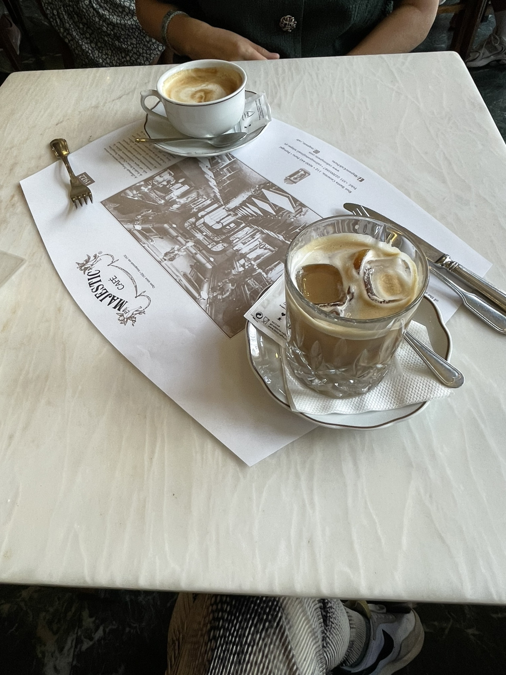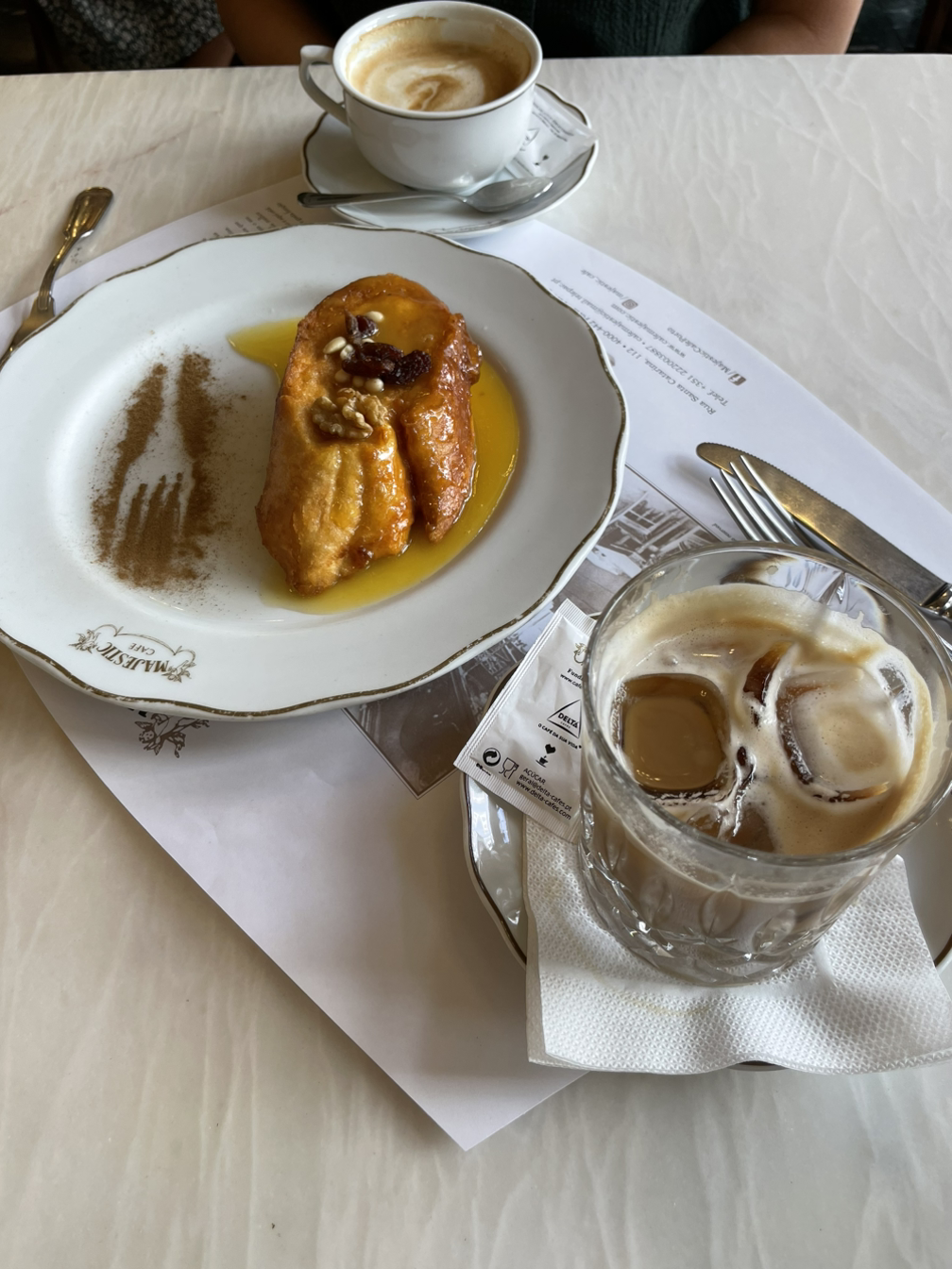 우선 포르투의 여행 행선지, 맛집 및 체험 장소는 오로지 구글 지도의 평점과 네이버 블로그 포스트픽으로 이루어 졌다는 걸 적어야 겠다. 거기에 에어비엔비 호스트가 적극적으로 추천한 몇몇 군데를 조미료처럼 첨가해 그럴듯한 3박4일 여행 일정표를 짰고, 첫째날은 매끄럽게 일정을 소화했기에 대중픽으로 더 기울어진 추세였다. 오늘도 그럼 대세를 따라 카페를 점지해보자는 쪽으로 마음을 먹었다. 그 중 하나가 마제스틱 카페였다. 포르투 여행에 공통적으로 언급된 곳들 중 하나이자 구글 지도에서 결코 지나칠 수 없는 리뷰수를 자랑하는 곳이다. 카페라고는 하지만 브런치 메뉴를 포함한 주류나 식사 메뉴도 있는 곳이다. 게다가 마제스틱 카페에서부터 쭉 이어지는 골목 거리도 사람들이 바글거리는 상업 지구기 때문에 겸사겸사 갈 만 하리라는 생각에 미쳤다. 지도를 찾아보니 우리가 묵는 숙소에서 걸어서 5분 거리였다. 일타삼피. 엄마와 나는 가벼운 발걸음으로 하루를 시작했다.