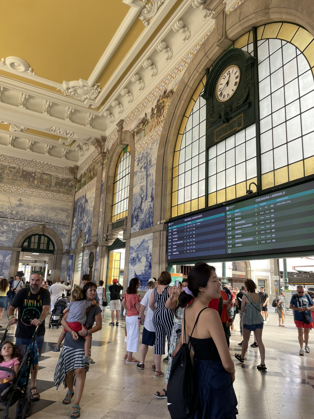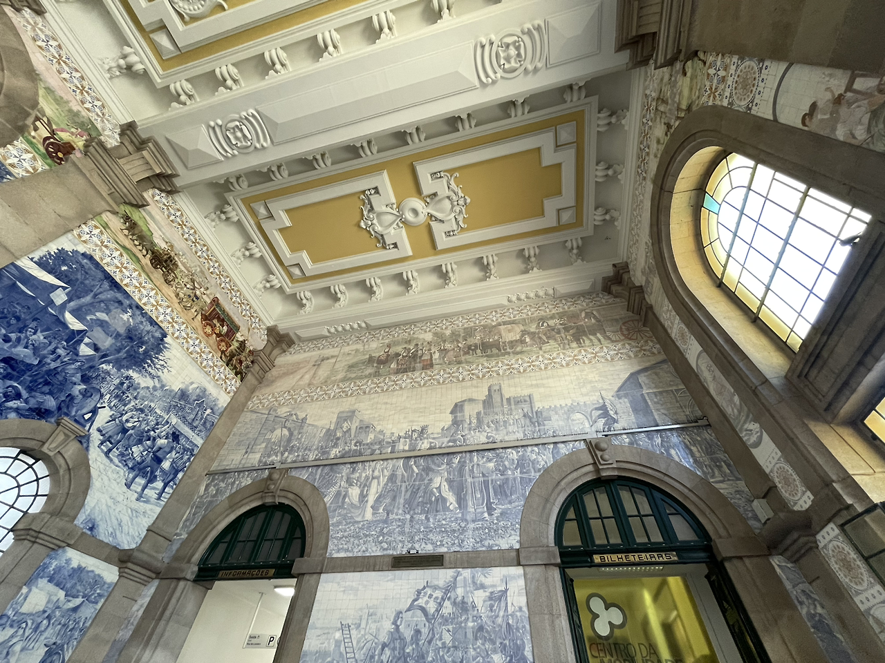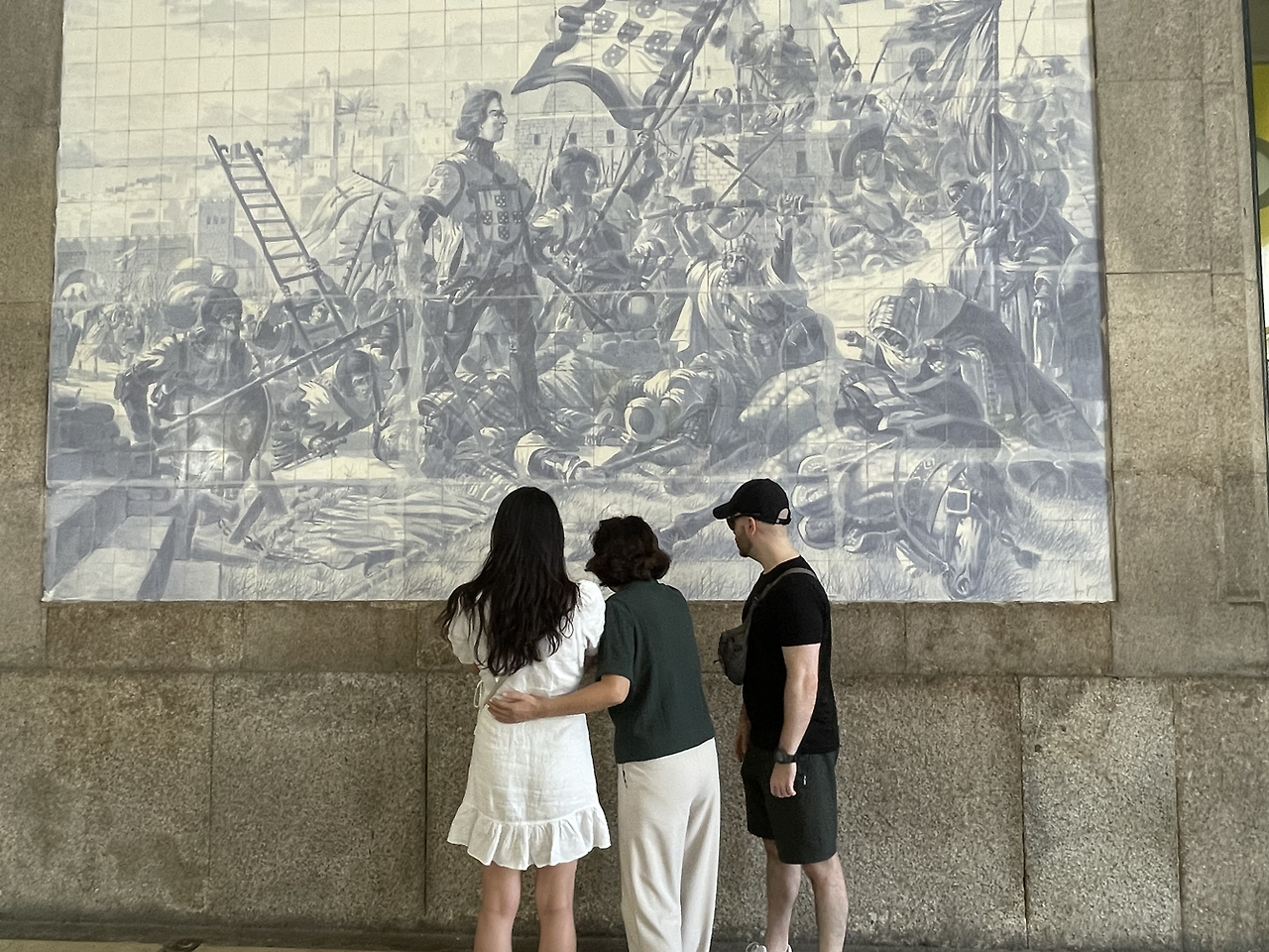 카페를 나와서 바로 상벤투 역으로 향했다. 상벤투 역은 포르투에 있는 기차역이다. 마찬가지로 네이버 블로그로 열심히 사전 계획을 수립했을 때 대부분의 사람들이 상벤투 역을 꼭 일정에 넣길래 왜 그런지 궁금했다. 굳이 기차역을 가는 이유가 있을까 싶었던 것이다. 아줄레주 타일이 유명한 기차역이라고 해도 타일이야 다른 곳에서도 얼마든지 볼 수 있었으니 말이다. 하지만 막상 기차역에 들리고 보니 그런 의문이 말끔히 가셨다. 2만여개의 아줄레주 타일이 나란히 붙어 연출해 낸 장면은 단순히 예쁘다는 미학적인 감상을 넘어 신기함마저 자아냈다. 아줄레주 타일이 붙은 벽화는 각 장면마다 포르투갈의 역사를 담았다고 하는데 예습을 안 해온 관계로 우린 외관을 보고 감탄을 연발하는 것 외에는 달리 하는 게 없었다. 물론 옆에서 톰이 끊임없이 벽화 얘기를 하기는 했지만 미안하게도 지나다니는 사람들 발길이 뜸해진 틈을 놓치지 않고 사진을 찍는 게 우선이었다. 머리에 지식을 채우는 건 직장에서 분에 넘치게 하고 있는 행위이기에 휴가는 휴가답게 앨범을 사진으로 채우는 게 더 정도에 맞아 보였다.