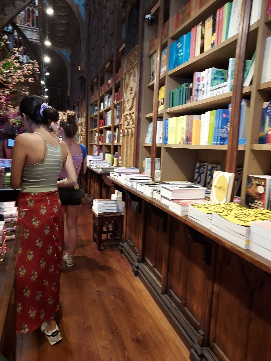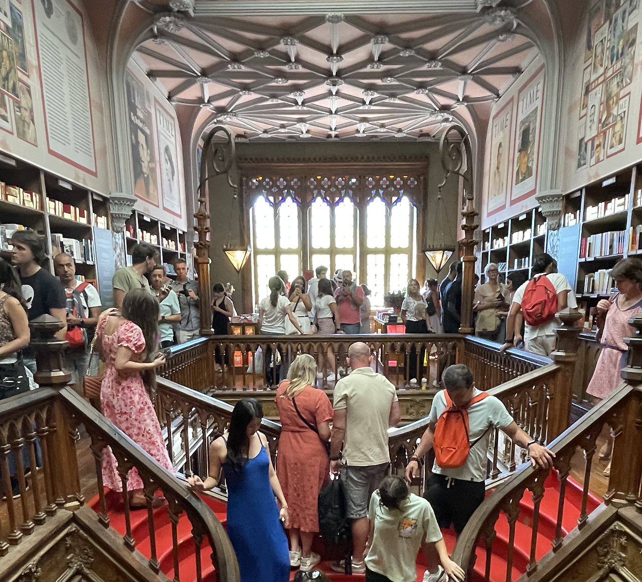 렐루 서점으로 향했다. 우린 미리 홈페이지에서 표를 예매했는데 이 또한 에어비엔비 호스트의 백만가지 추천 사항 중 하나였다. 지난 몇 가지 선택을 그의 조언을 바탕으로 결정했기에 전날 저녁에 미리 렐루 서점 입장권도 사놓기로 했다. 역시나 유비무환의 자세로 임했더니 긴 대기줄을 뚫고 바로 시간에 맞춰 들어갈 수 있었다. 서점은 들어서자마자 호그와트 분위기를 물씬 풍겼다. 내가 해리포터 시리즈를 바로 떠올릴 수 있었던 건 이미 소설과 영화를 여러 번 읽고 보았기 때문에 작가가 어디서 영감을 얻었는지 찾아낸 거지만 그보다 신기한 건 어떻게 이 서점에 들어서서 마법으로 움직이는 계단을 연상했을까 하는 것이었다.