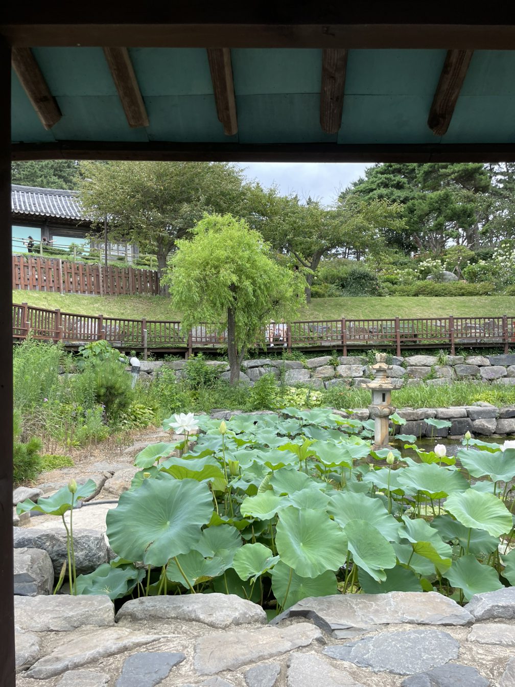 다음 날, 일조량으로 인한 자연기상으로 상쾌하게 아침을 맞이했다. 그래, 인간은 무릇 간사하고도 인위적이며 오만하기 짝이 없는 발명품인 알람 시계보다도 자연스럽게 햇빛을 쬐며 머리부터 발끝까지 뜨끈한 기운으로 눈을 떠야 하는 법이다. 조금 늦긴 했지만 이건 슬로우 라이프를 지향해야 할 현대인의 소양이라고 할 수 있겠다. 느긋하게 준비를 마치고 상화원으로 향했다. 상화원은 죽도에 위치한 정원이데 기다랗게 이어진 나무 데크 길을 따라서 죽도를 한 바퀴 빙 둘러보며 풍경과 경치를 즐길 수 있다. 습도가 높은 날씨에 푹푹 찌기는 했지만 그래서 그런지 젖은 풀내음이 올라왔다. 등골을 타고 흐르는 땀은 쾌적함과는 영 거리가 있었지만 온통 축축해진 덕분에 진득한 흙과 나무 냄새며 풀밭 냄새가 사방에 스며들어 있었다. 푸릇푸릇한 싱그러움을 만끽할 수야 있다면 얼마든지 땀 빼줄 수 있지.