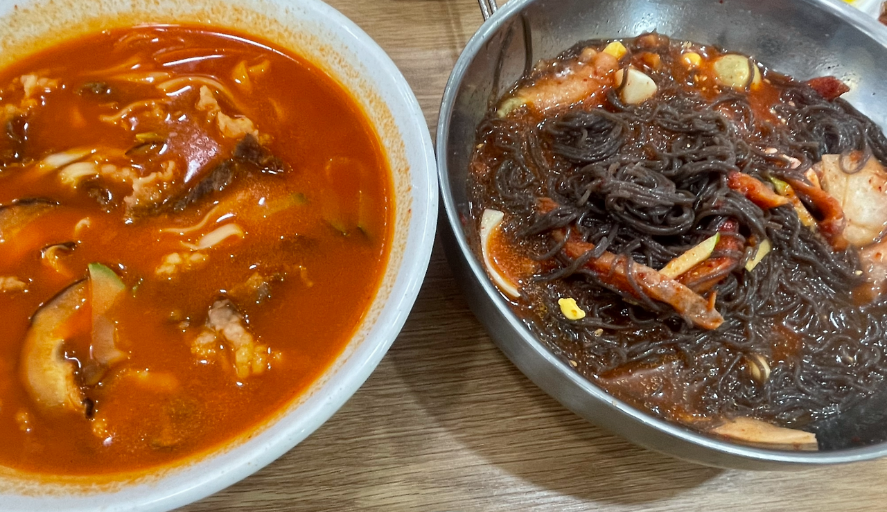 샤워장에서 박박 씻고 나오니까 언제 하늘에 구멍 난 듯 퍼부었는지 감쪽같을 정도로 비가 가늘어졌다. 추적추적 내리는 빗 속에서 점심거리를 찾아 주변을 둘러보았다. 길게 고민하지 않고 해변 식당가 중 눈에 띄는 곳으로 들어가 장칼국수와 코다리 냉면을 시켰다. 안 그래도 칼국수는 나의 최애 메뉴 중 하나인 데다 물놀이 직후의 출출함, 비 내리는 날 맛보는 뜨끈뜨끈함으로 칼국수와 냉면의 조합은 날 더없이 기쁘게 해 주었다. 다음 행선지를 정할 쯤에는 비가 다 그칠 때였는데 나는 이대로 동해를 떠나기 너무 아쉽다고 생각했다. 여행 전에 우리가 얘기한 장소를 다 가본 것도 아니거니와 놀다 보니 2박 3일은 턱없이 짧게 느껴지기도 했다. 이왕 다음 날까지 연차 낸 김에 하루 더 머물러도 되지 않을까 싶었다. 그리하여 우린 그 전날 뜨끈하게 몸을 지졌던 보양 온천호텔에서 하루를 더 묵게 되었다.