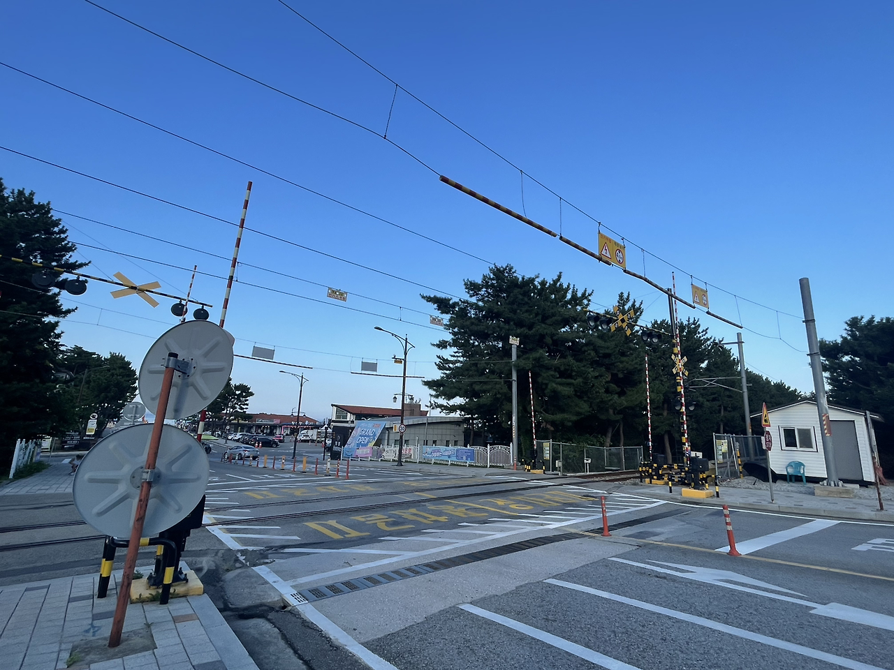 온천 호텔은 지붕의 모양이나 건물에 칠해진 색의 조합 때문인지 센과 치히로에 나오는 욕장처럼 보였다. 망상 해수욕장에서 보양 온천 호텔로 가는 길에는 바다 열차가 지나가는 기찻길이 깔려 있다. 기차가 지나갈 때는 차단 봉이 내려가 기다려야 하고, 차단 봉이 올라가면 사람과 차가 지나갈 수 있다. 기찻길에는 바닷물이 얕게 깔려 마치 가오나시와 치히로가 탔던 바다 열차도 눈앞에서 지나갈 것만 같았다. 해수욕장과 보양 온천 호텔을 이어주는 육교를 건널 때는 치히로처럼 숨을 참고 건너야 할 것 같았다. 평소 망상을 숨 쉬듯 해서 그런 걸까, 망상 해수욕장은 내 성미에 딱 맞는 해변가였다.