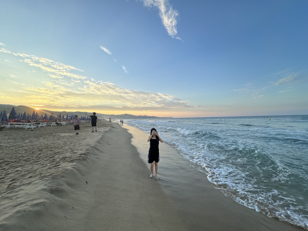 “성수기라서 사람들이 엄청 많을 줄 알았는데 그렇지도 않네. 너무 휑하다. 옛날에는 밤에도 해변가에는 사람들 모여서 불꽃놀이도 하고 공 차고 그랬는데, 요새는 안 그런가?“