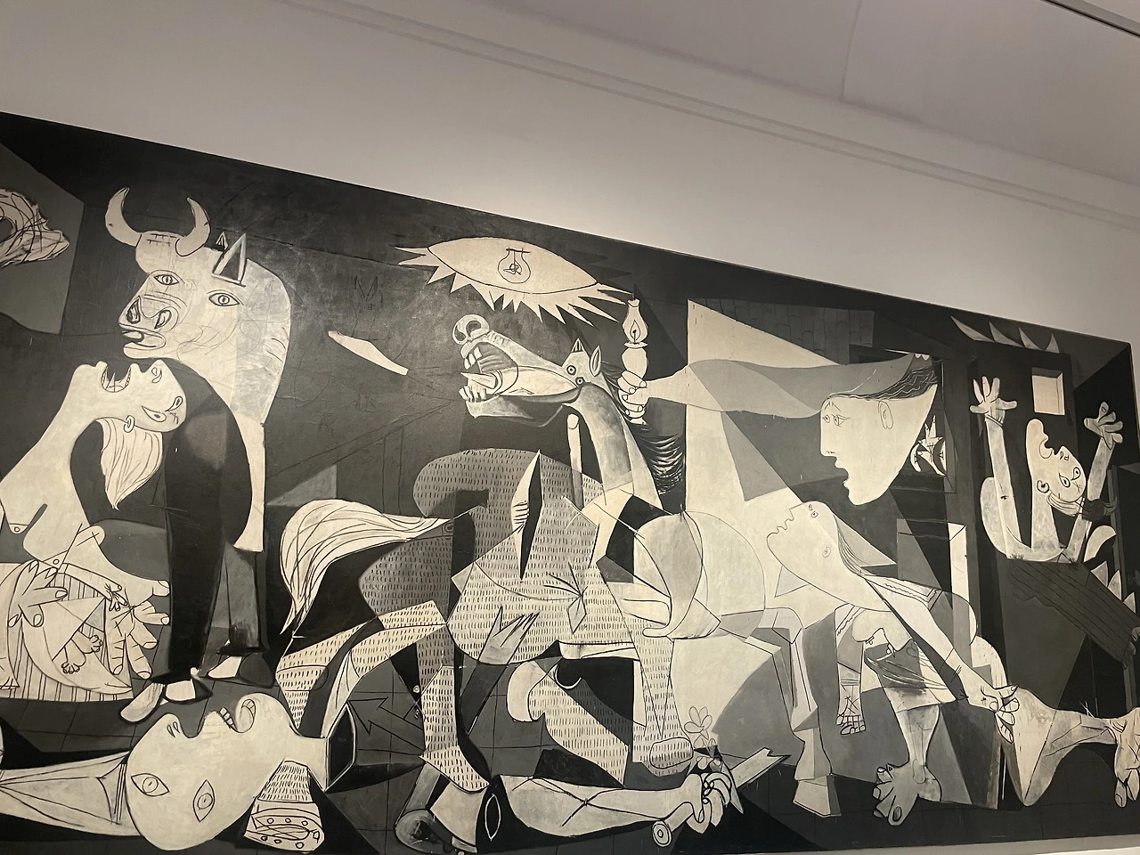 마드리드의 시간은 빠르게 흘렀다. 우리는 피곤했지만 그 와중에 할거리와 볼거리를 놓칠 수 없었다. 말차 라떼에 푹 빠져 버린 요즘, 집 앞 까페에서 말차 한 잔을 시키고 바로 옆의 힙해 보이는 동네 베이커리에 들어가 패스츄리를 한가득 시켜 아침으로 먹었다. 교과서에 손바닥만 한 크기로 등장하는 피카소의 게르니카는 사실 미술관 한 벽을 몽땅 차지하는 거대한 규모였다. 전쟁과 학살의 참혹함을 담은 그림을 가까이서, 또 몇 걸음 떨어져서 요리조리 뜯어보았다. 마드리드의 반나절은 짧았다. 하지만 나름 나름 여유를 즐겼고, 또 나름 나름의 탐방을 했다.