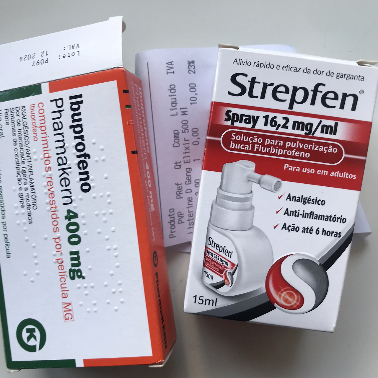 편도염에 직빵인 약을 찾는다고 하니 약사가 스프레이부터 해서 가글, 혀로 녹여먹는 약, 이부프로펜 계열의 알약까지 갖가지 형태의 제품들을 유리 진열대 위에 올려놓는다.