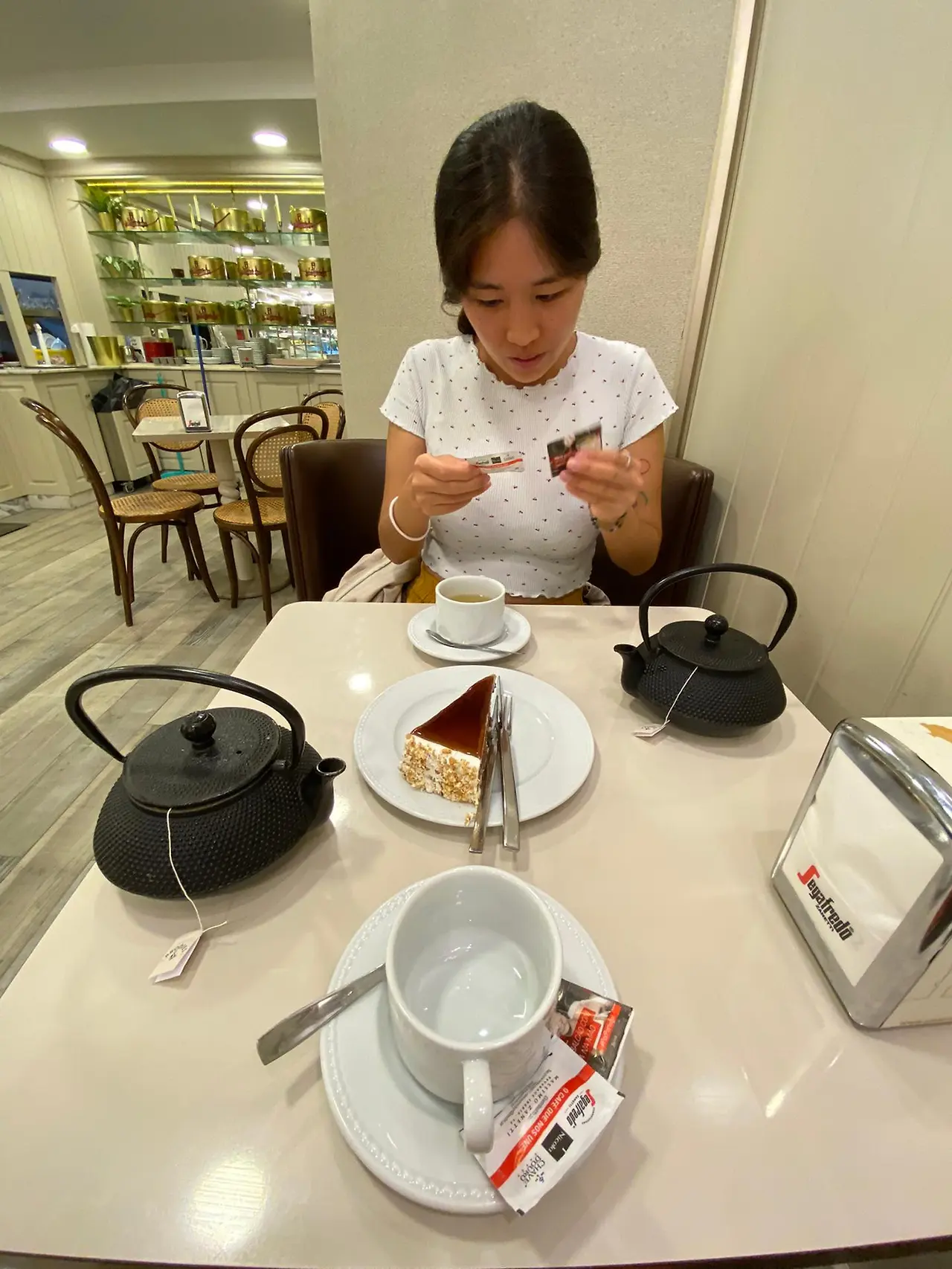 어디를 가자고 정한 것은 아니었지만 티파가 이 거리는 이렇다, 저 건물은 저렇다 설명을 해주는데 카페를 마침 지나치게 된 것이고 이왕 온 김에 디저트나 먹어보자 생각이 들어 안을 살피고 들어갔다.