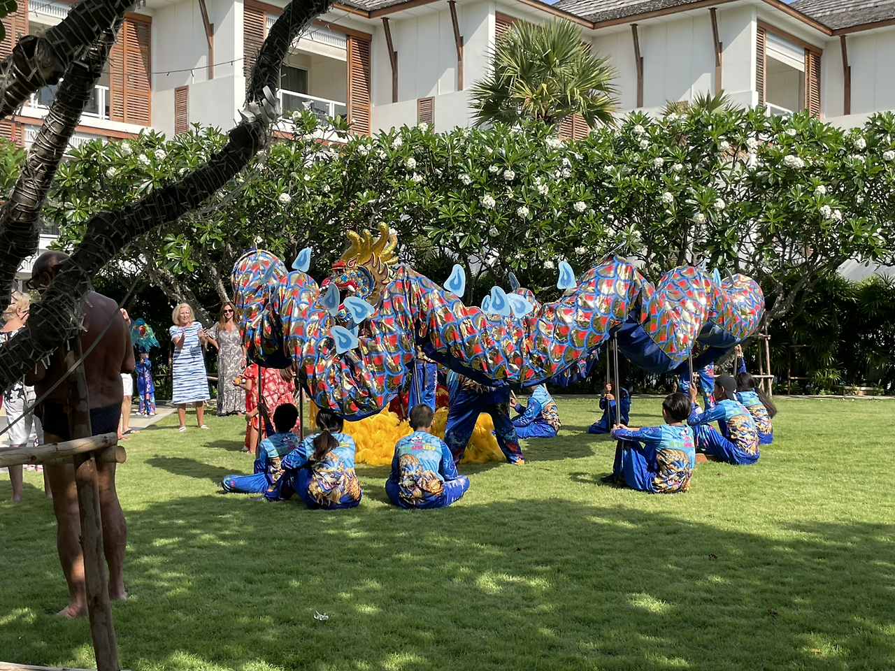 이 곳 저 곳에 빨간 등불과 띠를 둘러 치장을 한 것과 중국식 전통 복장을 입은 리조트 직원들, 정말로 차례라도 지낼 모양인지 정원 한 가운데에 놓인 음식 상까지. 이 날을 벼르고 있었던 건지 눈치도 못 차린 사이에 제법 구정다운 분위기가 만들어졌다.