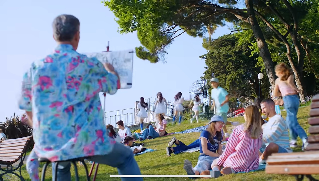 거기까지 들으니 어떤 장면인지 언뜻 알 것 같기도 했다. 하지만 다시 복기. 공원에서 멤버들이 옹기종기 모여서 노래가 흘러 나오는 걸로 시작하고, 장면이 바뀌고 분수대 같은 곳 앞에서 화려한 무늬의 에어로빅 군단이 나와 군무를 추기 시작하는 곳이 정녕 이 곳이란 말인가? 하나둘씩 떠올리니 이 장소가 맞는 것 같았다.