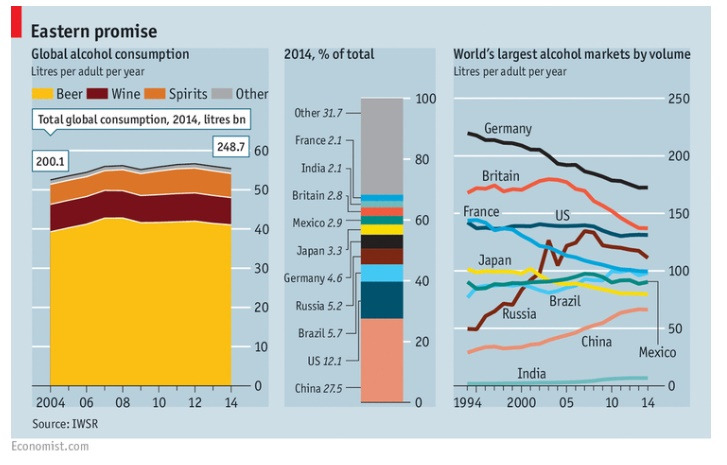 최근 전 세계 술 소비량이 계속 감소세를 보이고 있습니다. 영국 이코노미스트의 보도를 보면 주로 젊은 층은 과음을 즐기지만 소득이 적어 술을 자주 마시지 못하고 하루도 쉬지 않고 술을 즐기는 중년층은 건강 등의 이유로 술을 줄이고 있는 추세입니다. 일주일에 5일 이상 술을 마시는 영국 사람의 비중이 10년 전만 해도 15%를 넘겼지만 현재는 10% 미만이라고 합니다.