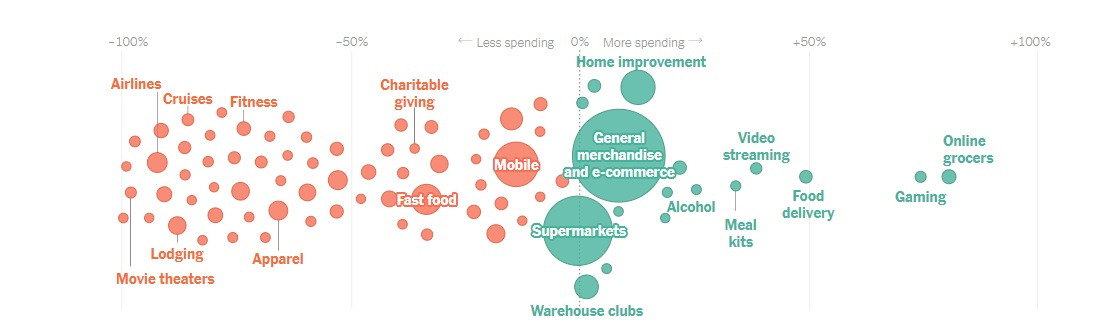 코로나로 가장 타격이 큰 업종은 무엇일까요? 뉴욕타임스의 기사를 보면 이렇습니다.