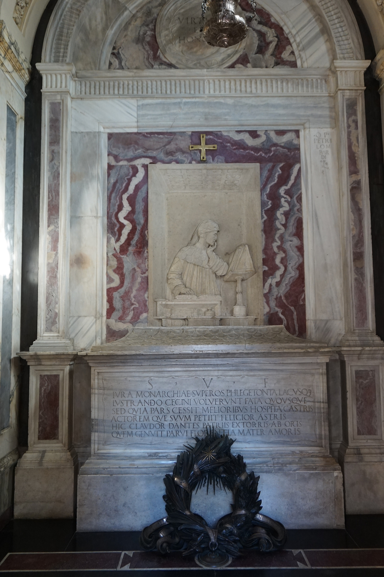 새로운 시대를 원했던 단테는 정쟁에 휩싸여 교황 지지파에 의해 피렌체에서 추방당하고 궐석재판으로 사형에까지 처해진다. 피렌체로 돌아갈 수 없는 정치적 망명자의 처지로 루카, 베로나 등지를 떠돌다 라벤나에서 생을 마감했다. 조용한 주택가의 길 끝, 성 프란체스코 성당 바로 옆에 있는 작은 흰색 건물에 단테의 무덤이 있다. 단테는 베네치아를 다녀오던 길에 1321년 말라리아로 사망했지만 현재의 무덤은 그보다 훨씬 뒤에 지어졌다. 신고전주의 양식으로 지어진 건물에 들어가면 베르나르도 카나치오가 쓴 비문이 담긴 단지를 볼 수 있다. 피렌체 시민들이 단테 탄생 600주년을 기념하기 위해 1865년 단테의 유해를 피렌체로 가져오려 했지만 실패하고 산타 크로체 성당에 가묘를 만드는 것으로 만족해야 했다. 단테에게 추방령을 내린 피렌체 시는 2007년 단테에게 공식 사과를 표하고 그를 사면했다.