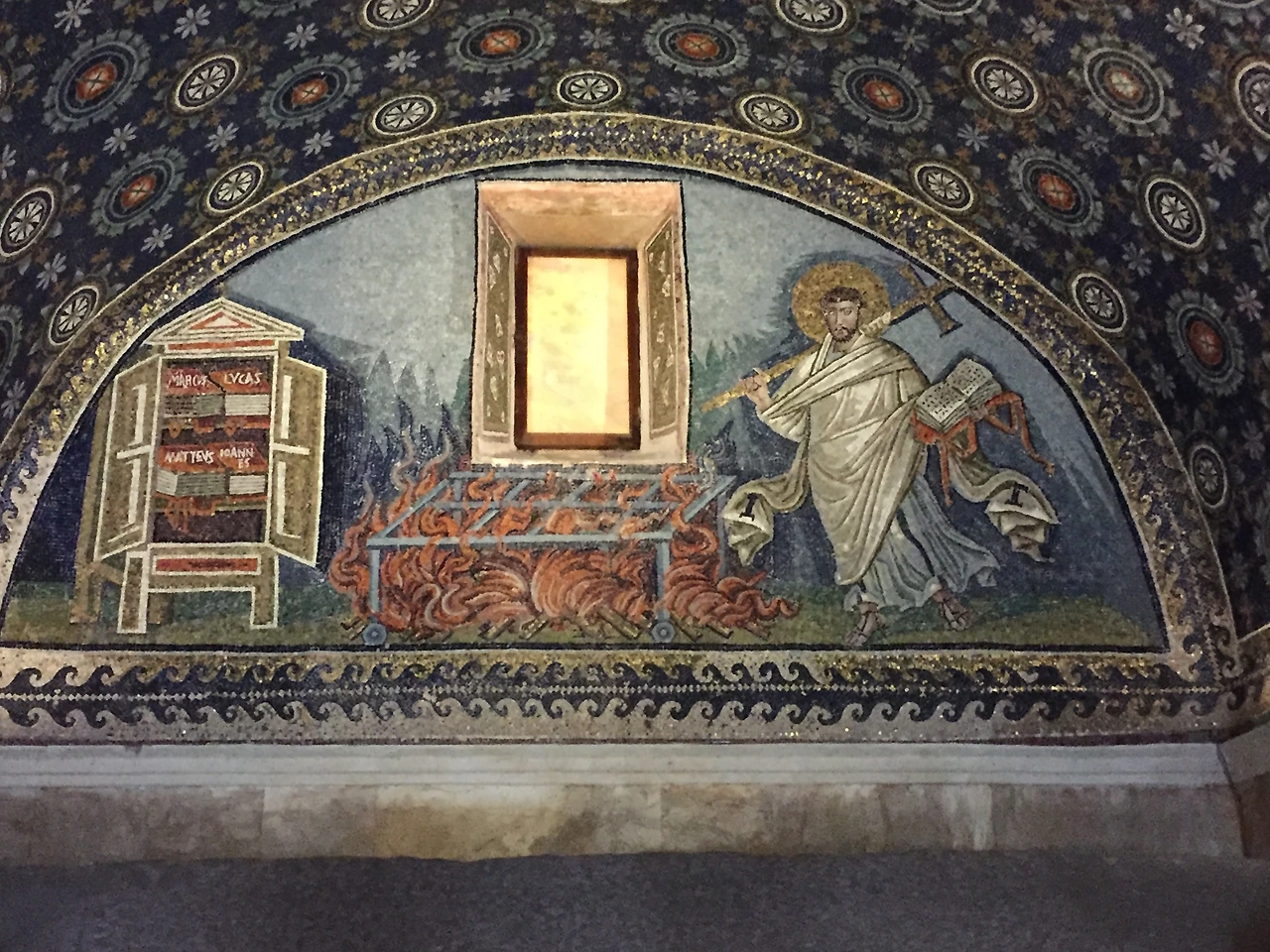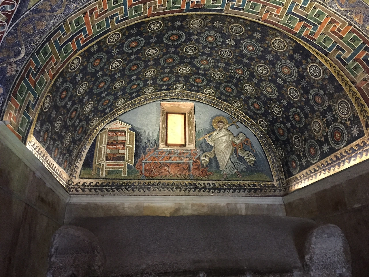 4세기 테오도시우스 1세는 장남인 아르카디우스와 차남 호노리우스에게 로마제국을 물려준다. 형은 동로마를 차지하고 동생은 서로마를 넘겨받아 라벤나를 수도로 삼는다. 게르만의 침략이 있으면 바로 동로마로 피신하기 위해서였다. 갈라 플라치디아(388~450)는 호노리우스의 여동생으로 닭 키우는 것이 취미였던 무능한 오빠를 대신해 서로마를 통치했다. 갈라 플라치디아는 후에 호노리우스와 공동 황제가 되는 콘스탄티우스 3세와 결혼해 25년간 서로마를 섭정했다. 예술을 후원했던 여제는 생전에 자신과 가족을 위해 묘역을 조성했다.