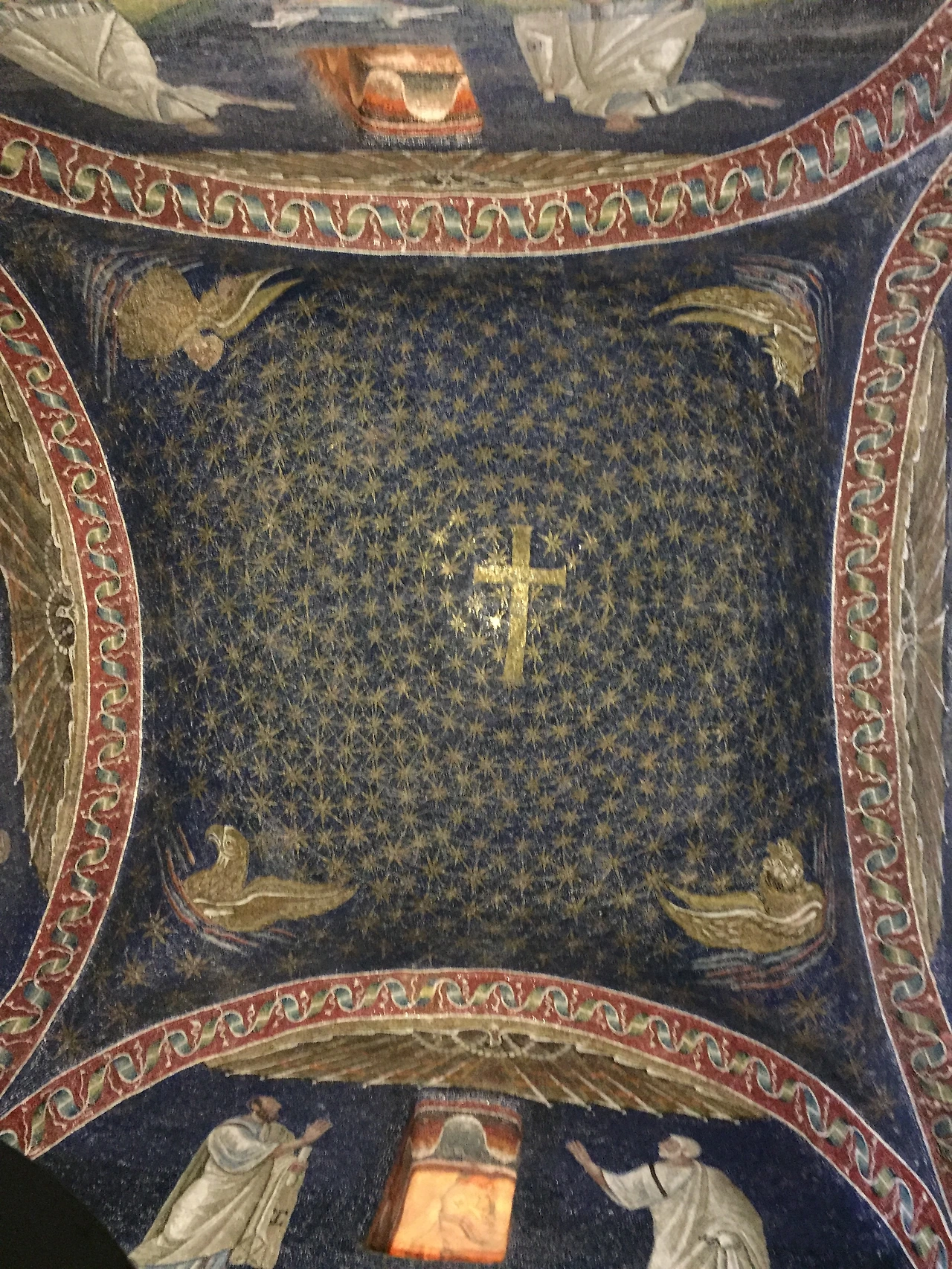 분명 한 낮인데 천장에는 반짝이는 별이 가득한 우주가 보인다. 눈을 비비고 다시 본다. 채광창에서 들어오는 빛을 받아 둥근 천장을 화려하게 수놓은 것은 1500년 전 예술가들이 그려놓은 모자이크화였다. 입에서 감탄사가 절로 나왔다. 수많은 시간이 무색하게 간직한 아름다움, 숨이 턱 멎는 것 같았다. 명상적이고 뭐라 표현할 수 없을 만큼 신비스러운 기운이 감돌았다.