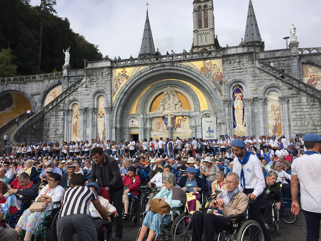루르드에 갔던 날은 3개월간의 순례가 끝나는 날이어서 유럽 각지에서 온 순례객들로 인산인해였다. 아침에 길에서는 사람이 별로 보이지 않았는데 이 많은 사람들은 어디에 있다가 나타난 것인지 의아했다. 휠체어를 탄 사람들이 많았고 그들을 도와 함께 온 사람들까지 참 다양한 사람들이 성지를 찾아와 의미 있는 시간을 보내는 모습이 보기 좋았다. 전날 밤 루르드는 그렇게 조용했는데..