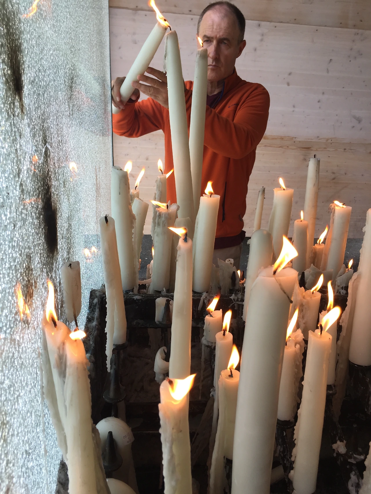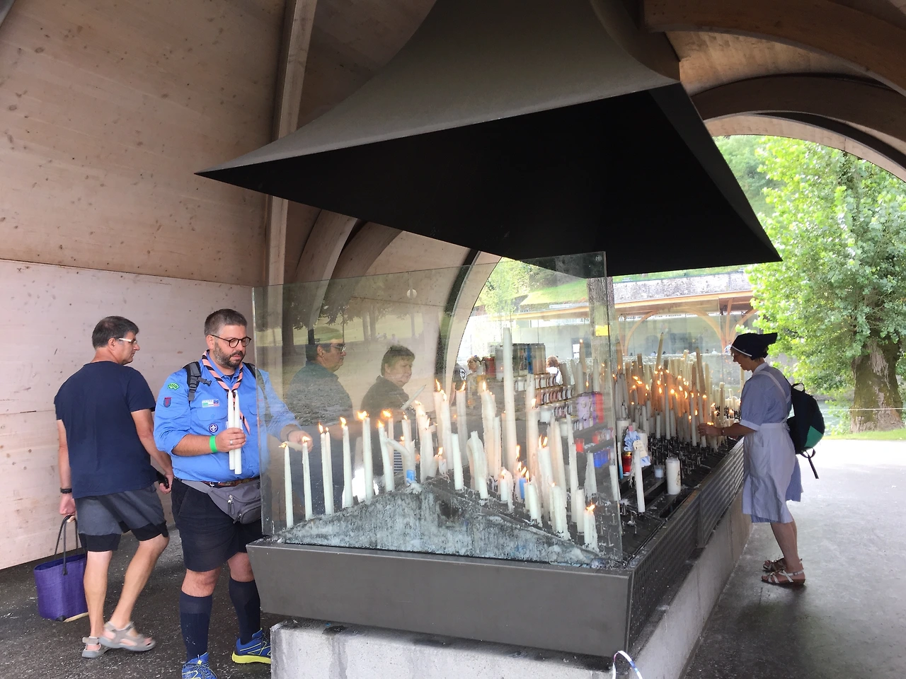 동굴에서 나온다는 성수는 동굴 옆의 벽에서 나온다. 수도꼭지를 여러 개 달아 놓아 많은 사람들이 성수를 담아갈 수 있도록 해 놓았다. 강을 건너가면 소원 초를 꼽을 수 있는 기도 공간들이 있다. 150년 넘게 순례객을 맞는 곳이니 모든 것이 잘 갖춰져 있다.