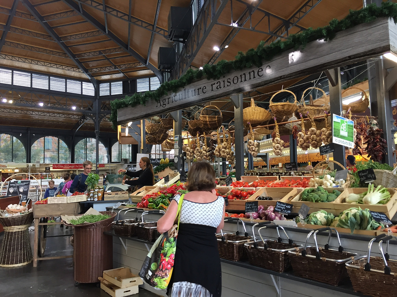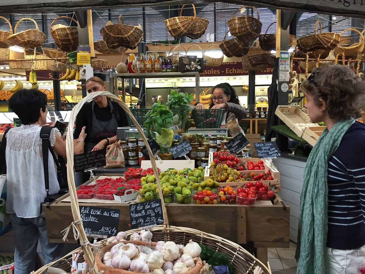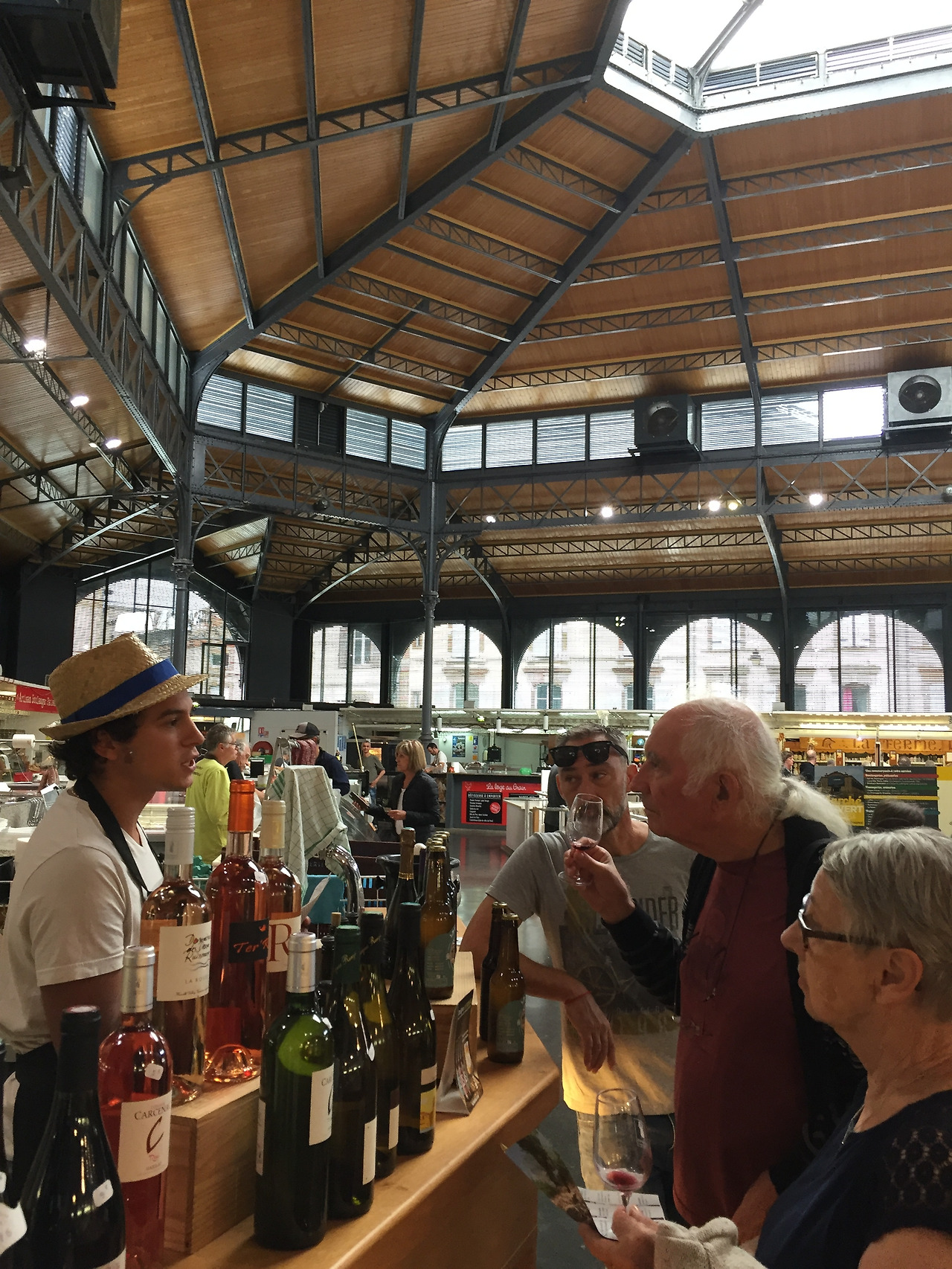 이튿날 아침 시내 구경을 하러 가던 길에 마주친 현지 사람이 시장( 천정이 덮인 시장, Marche Couvert)에 꼭 들러보라고 권하기에 큰 기대를 하지 않고 들어가 봤는데 들어서자마자 정말 깜짝 놀라 눈이 휘둥그레졌다. 지역에서 나는 식재료가 정말 다양하고도 풍요롭게 가득 차 있었다. 포도주부터 야채와 과일, 저장음식, 견과류, 가금류, 육고기 등등 보는 것만으로도 눈이 즐겁고 배가 불러오는 것 같았다. 광장시장처럼 시장에 해산물, 닭고기 요리 등을 파는 식당도 있어서 장바구니를 옆에 놓고 식사를 하는 사람들도 많았다. 이처럼 다양한 식재료 시장이라니!