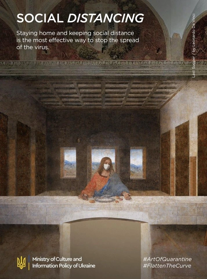 ##오늘은 오랜만에 [아트 힐링 트래블] 시리즈를 올려봅니다. 밀라노 두오모의 초청으로 안드레아 보첼리가 부활절 특별 공연 'Music for Hope'라는 제목으로 코로나바이러스와 싸우고 있는 전 세계에 위로와 희망의 메시지를 전했다는 글을 포스팅했습니다. 내친김에 밀라노에 있는 레오나르도 다빈치의 '최후의 만찬'을 소개합니다. 이 걸작은 밀라노 산타마리아 델레 그라치에 수도원에 있습니다. 지금 그곳의 문도 굳게 닫혀 있겠지요. 아침에 지인이 보내온 이미지 중 하나가 최후의 만찬이었는데 예수님이 열두제자와 사회적 거리두기를 하느라 혼자 있는 모습이었습니다. (표제 이미지)우크라이나 문화부에서 만든 이미지인데요. ‘웃프다’는게 바로 이런 상황이겠지요. 예수님이 열두제자와 모여 최후의 만찬도 하고, 우리는 여행도 하고 미술관도 갈 수 있는 날을 기다리며 글을 올립니다. ##